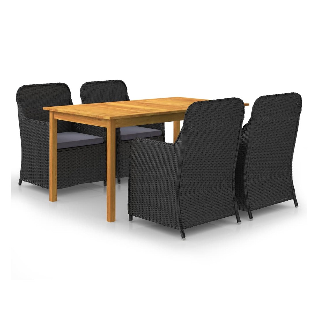Créez une esthétique convaincante et uniforme dans votre espace extérieur avec cet ensemble de salle à manger de jardin ! La table de salle à manger est fabriquée en bois d’acacia massif avec une finition à l’huile, ce qui la rend stable, durable et facile à entretenir. Dotées d’un cadre en acier enduit de poudre recouvert de résine tressée résistante aux intempéries, ces chaises de salle à manger sont robustes et faciles à nettoyer. La forme ergonomique et les coussins bien rembourrés offriront le confort d’assise suprême. Les housses de coussin en polyester à faible entretien peuvent être facilement retirées et lavées. Remarque importante : Nous vous recommandons de couvrir l'ensemble de salle à manger pendant la pluie, la neige et le gel pour une utilisation durable.