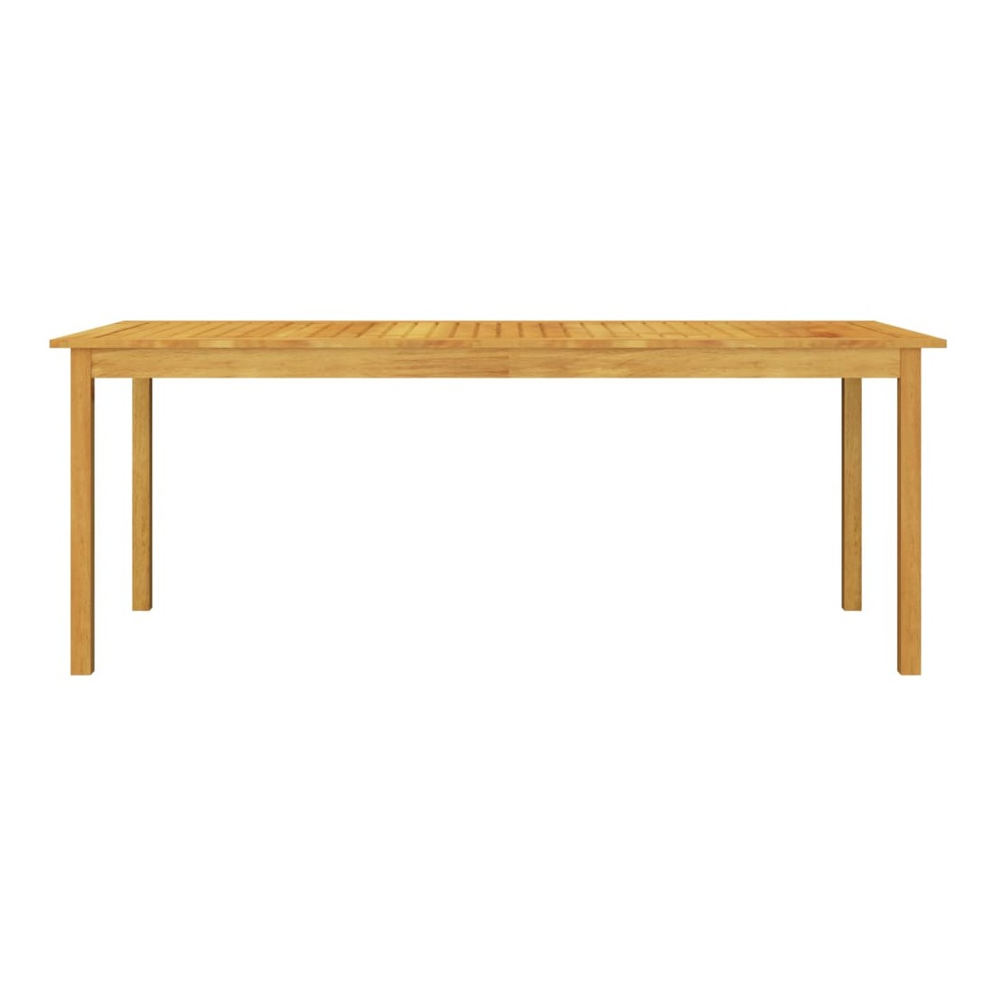 Créez une esthétique convaincante et uniforme dans votre espace extérieur avec cet ensemble de salle à manger de jardin ! La table de salle à manger est en bois d’acacia massif avec une finition à l’huile, ce qui la rend stable, durable et facile à entretenir. Dotées d’un cadre en acier enduit de poudre recouvert de résine tressée résistante aux intempéries, ces chaises sont robustes et faciles à nettoyer. La chaise d’extérieur, conçue avec dossier incurvé et accoudoirs, présente une forme plus ergonomique pour un confort maximal. Les accoudoirs sont joliment décorés en bois d'acacia massif, ce qui apporte une sensation de charme rustique. De plus, les coussins bien rembourrés offrent un confort suprême pendant votre temps assis. Remarque importante : Nous vous recommandons de couvrir