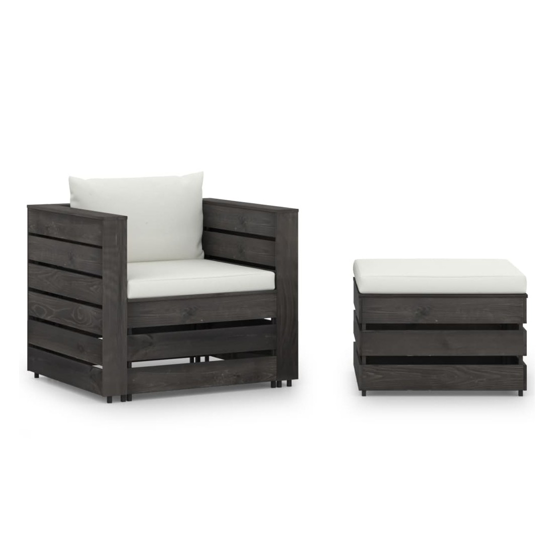 Salon de jardin 2 pcs avec coussins Bois imprégné de gris