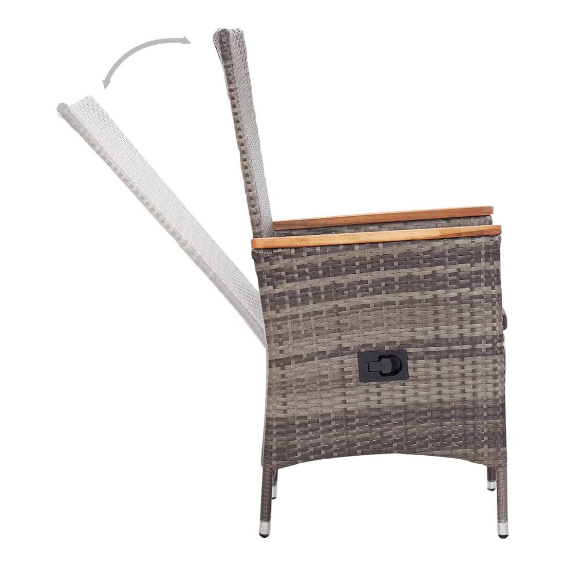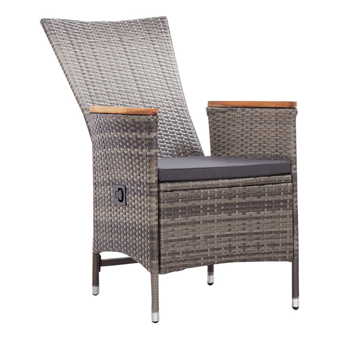 Créez une esthétique convaincante et uniforme dans votre espace extérieur avec cet ensemble de salle à manger de jardin ! La table de salle à manger est fabriquée en bois d’acacia massif avec une finition à l’huile, ce qui la rend stable, durable et facile à entretenir. Dotées d’un cadre en acier enduit de poudre recouvert de résine tressée résistante aux intempéries, ces chaises de salle à manger sont robustes et faciles à nettoyer. Les chaises inclinables vous offrent tout le confort nécessaire. Le dossier s’inclinera en tirant sur le bouton situé au côté. Grâce à leur construction légère, elles sont faciles à déplacer. Elles sont également livrées avec des coussins d'assise hautement confortables et bien rembourrés pour un confort suprême. Les housses en polyester nécessitant peu d'