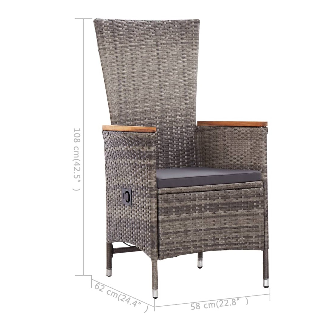 • Dimensions de la chaise (lorsqu'elle n'est pas inclinée) : 58 x 62 x 108 cm (l x P x H)