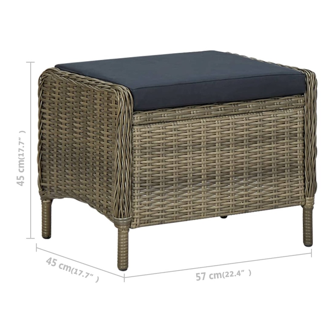 • Dimensions du repose-pied : 57 x 45 x 45 cm (l x P x H)