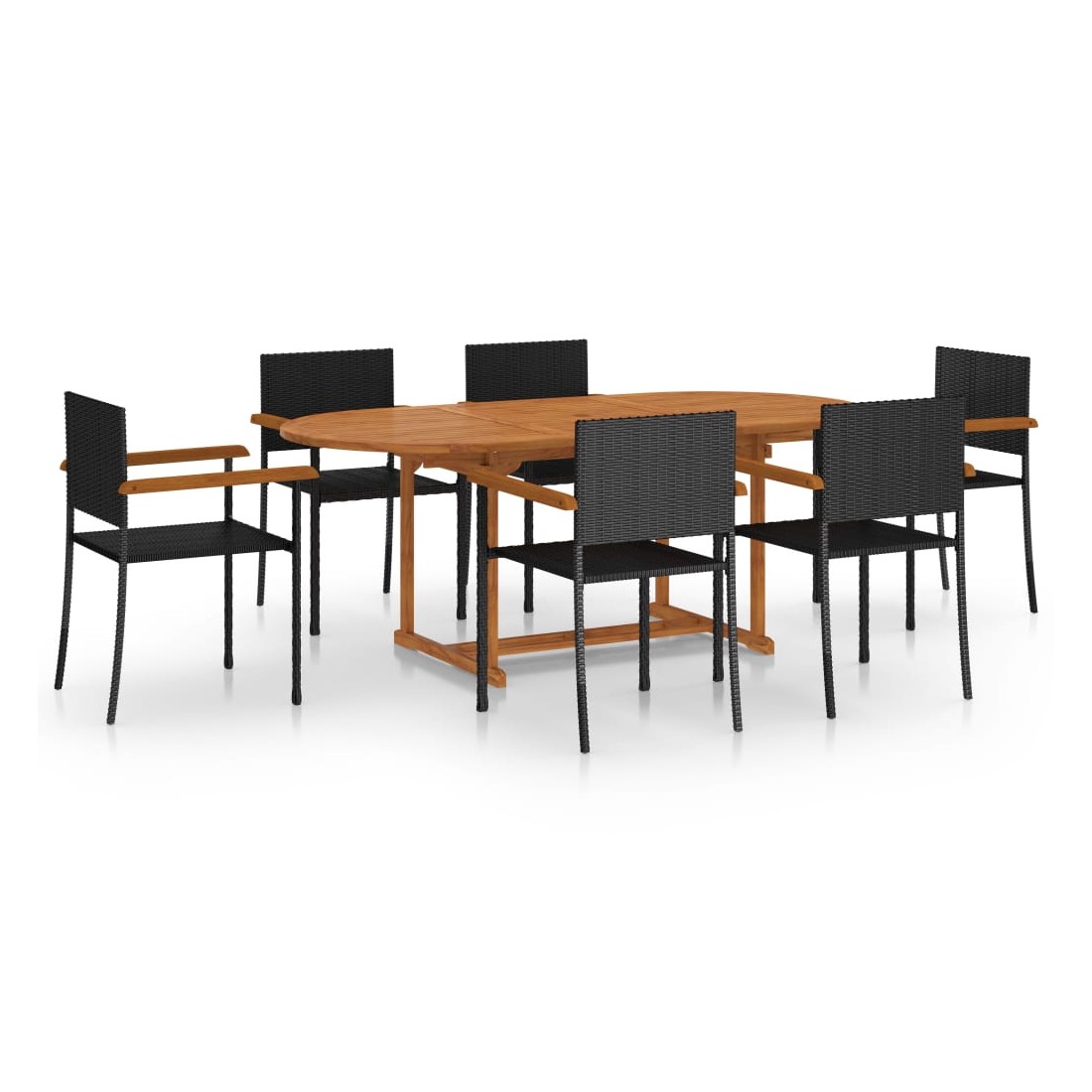 Ensemble à manger de jardin 7 pcs Résine tressée Noir
