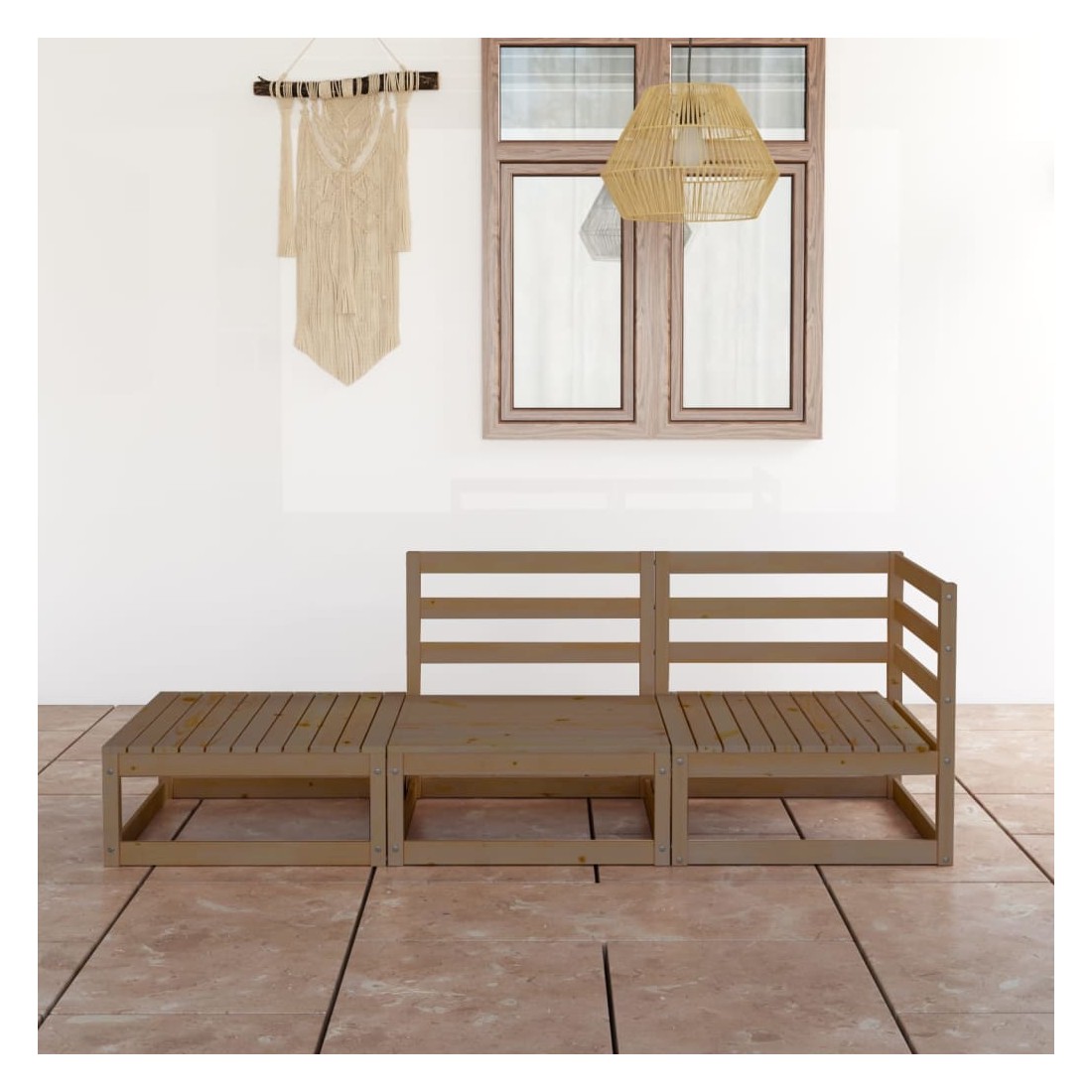 Salon de jardin 3 pcs Marron miel Bois de pin massif