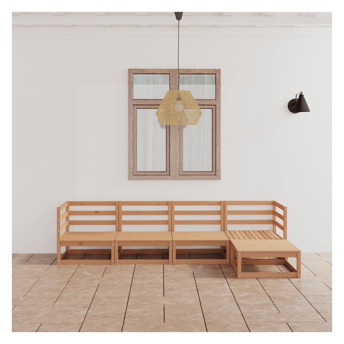 Salon de jardin 5 pcs marron miel bois de pin massif