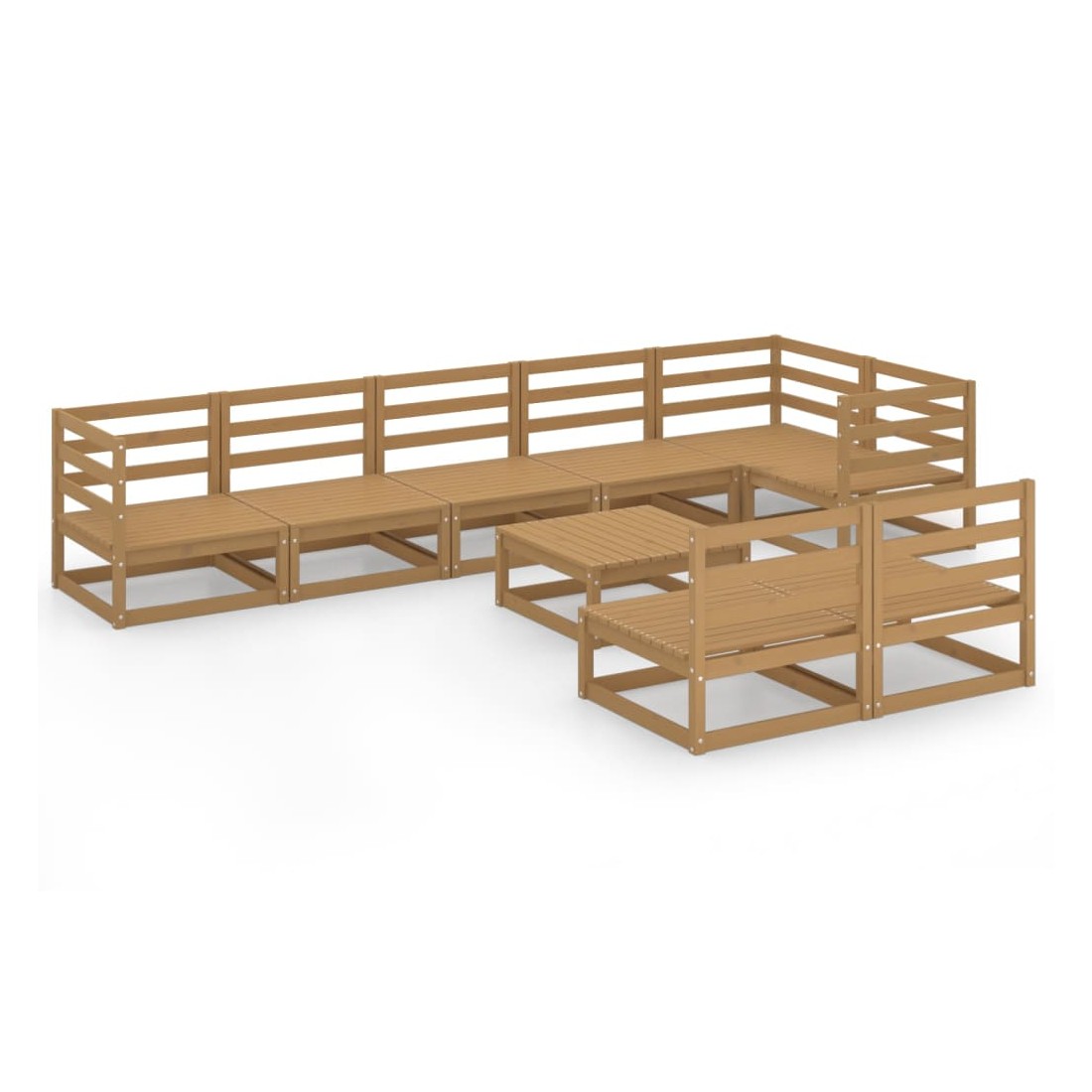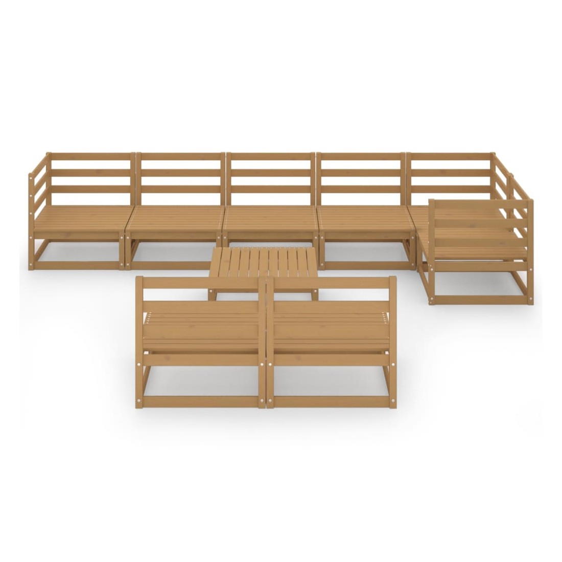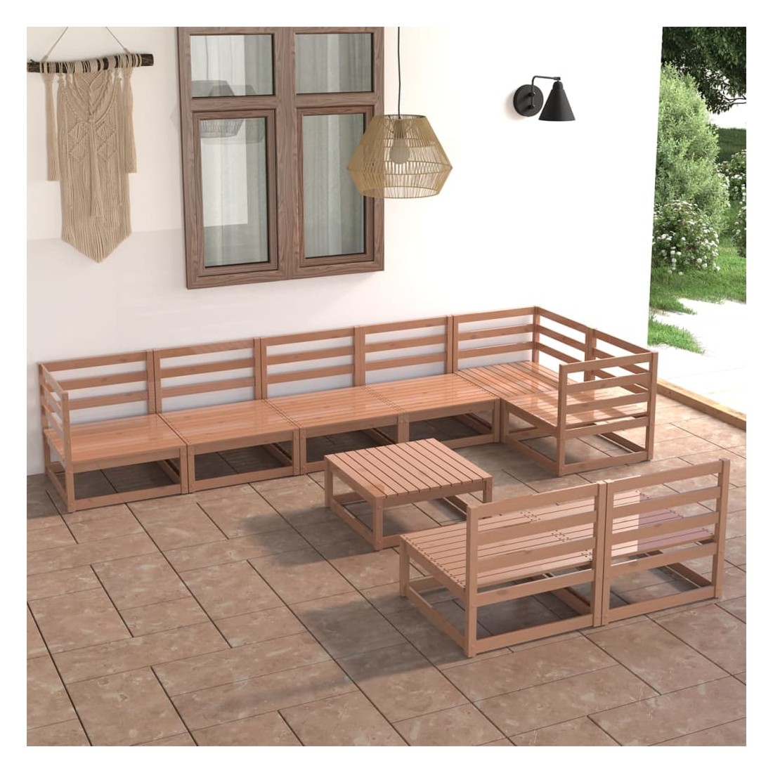 Salon de jardin 9 pcs marron miel bois de pin massif