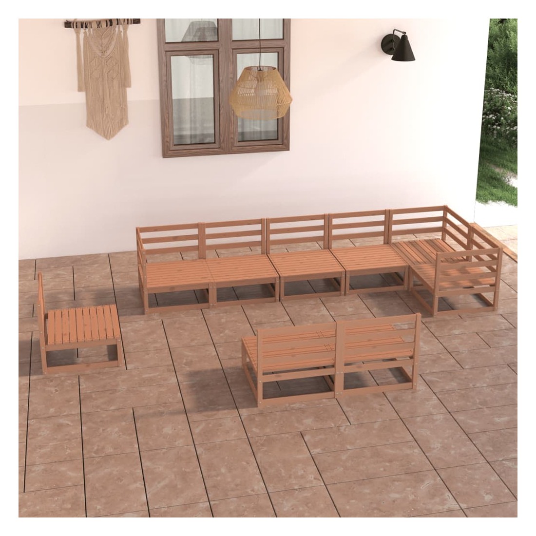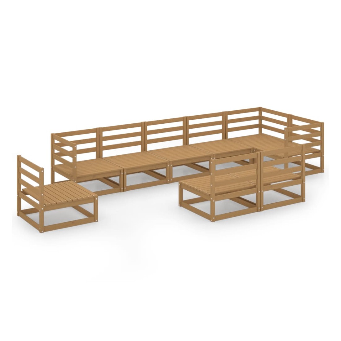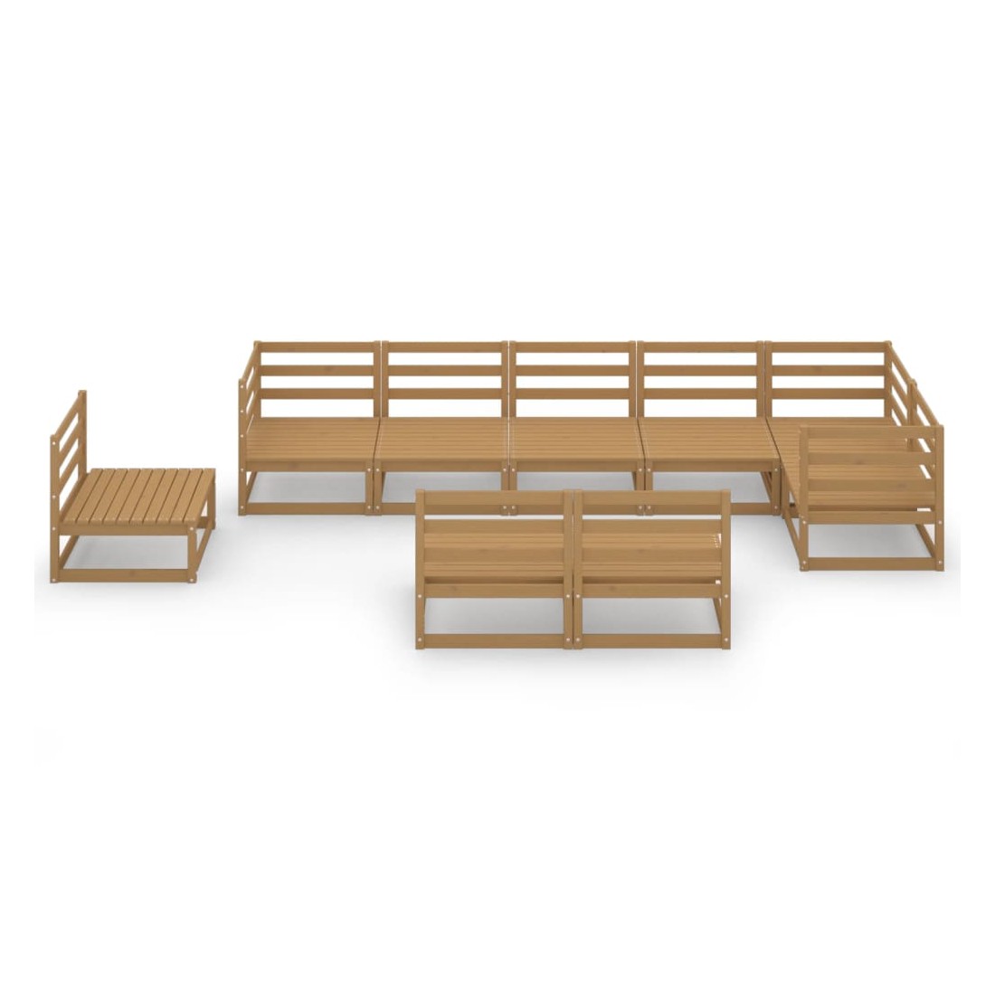 Salon de jardin 9 pcs marron miel bois de pin massif