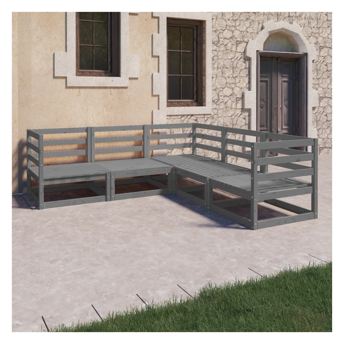 Salon de jardin 5 pcs gris bois de pin massif