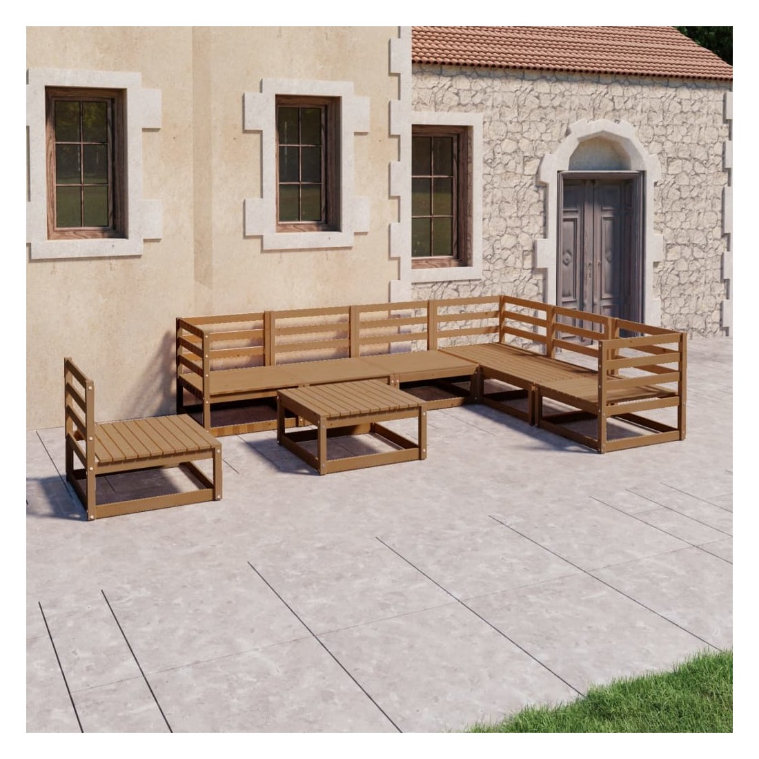 Ce salon de jardin classique en bois de pin massif est un excellent choix pour vous détendre, profiter du beau temps, faire une sieste ou discuter avec votre famille ou vos amis. L'ensemble de canapé est fabriqué en bois de pin massif, ce qui le rend robuste et stable. Cet ensemble a une construction solide et nécessite peu d'entretien. Avec un design de palette intemporel, cet ensemble ajoute une touche de charme rustique à votre espace de vie. Remarque : afin de prolonger la durée de vie des meubles d'extérieur, nous vous recommandons de les protéger avec une housse imperméable.
