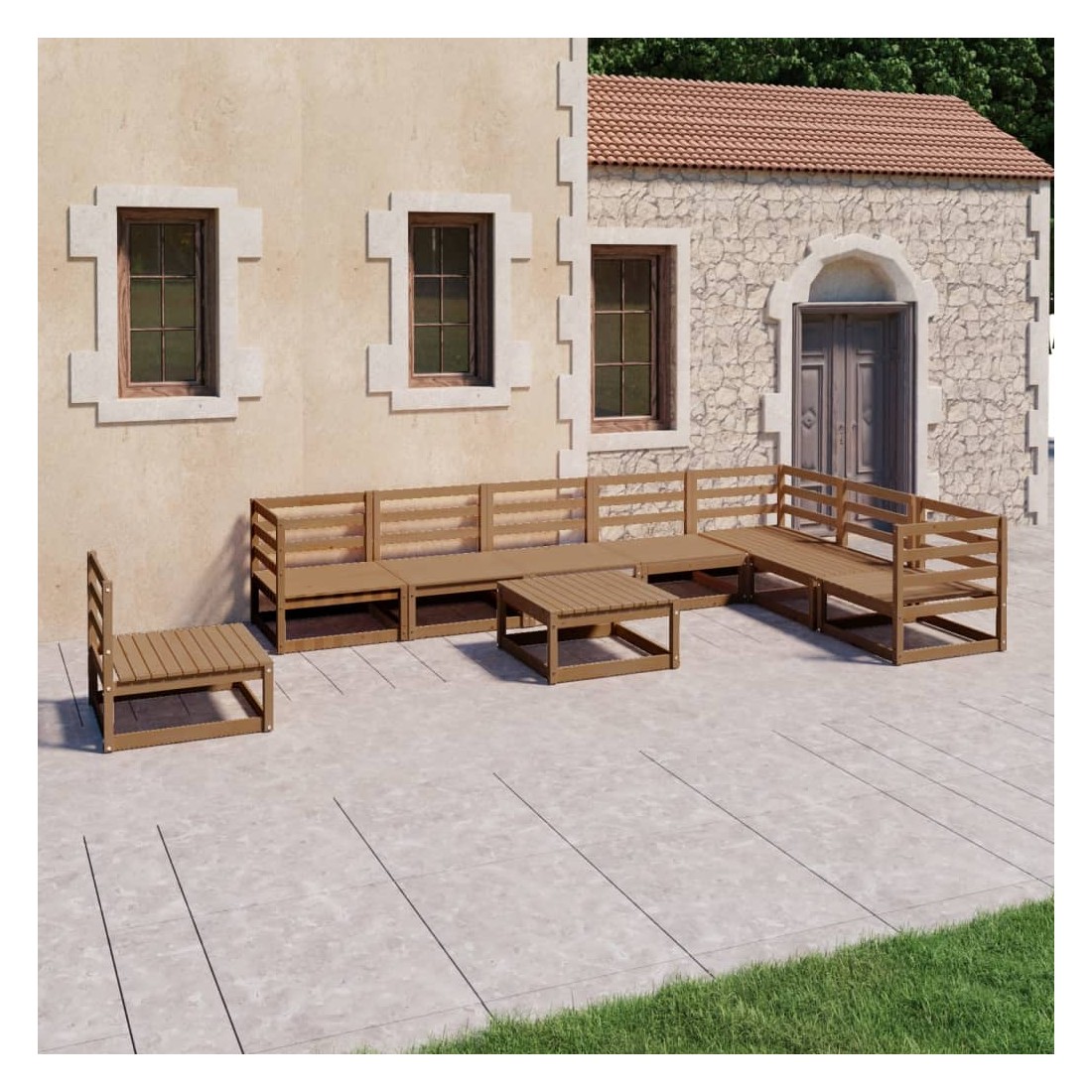 Salon de jardin 9 pcs marron miel bois de pin massif