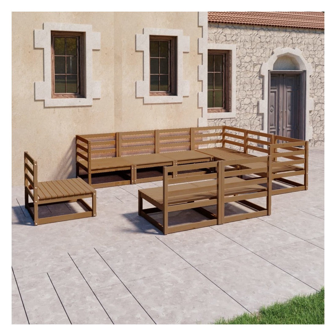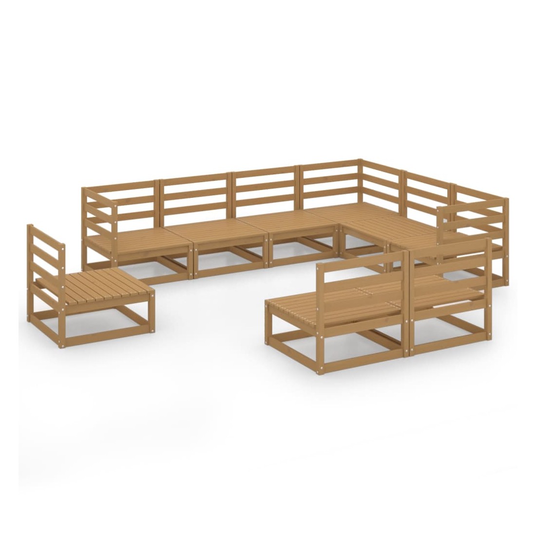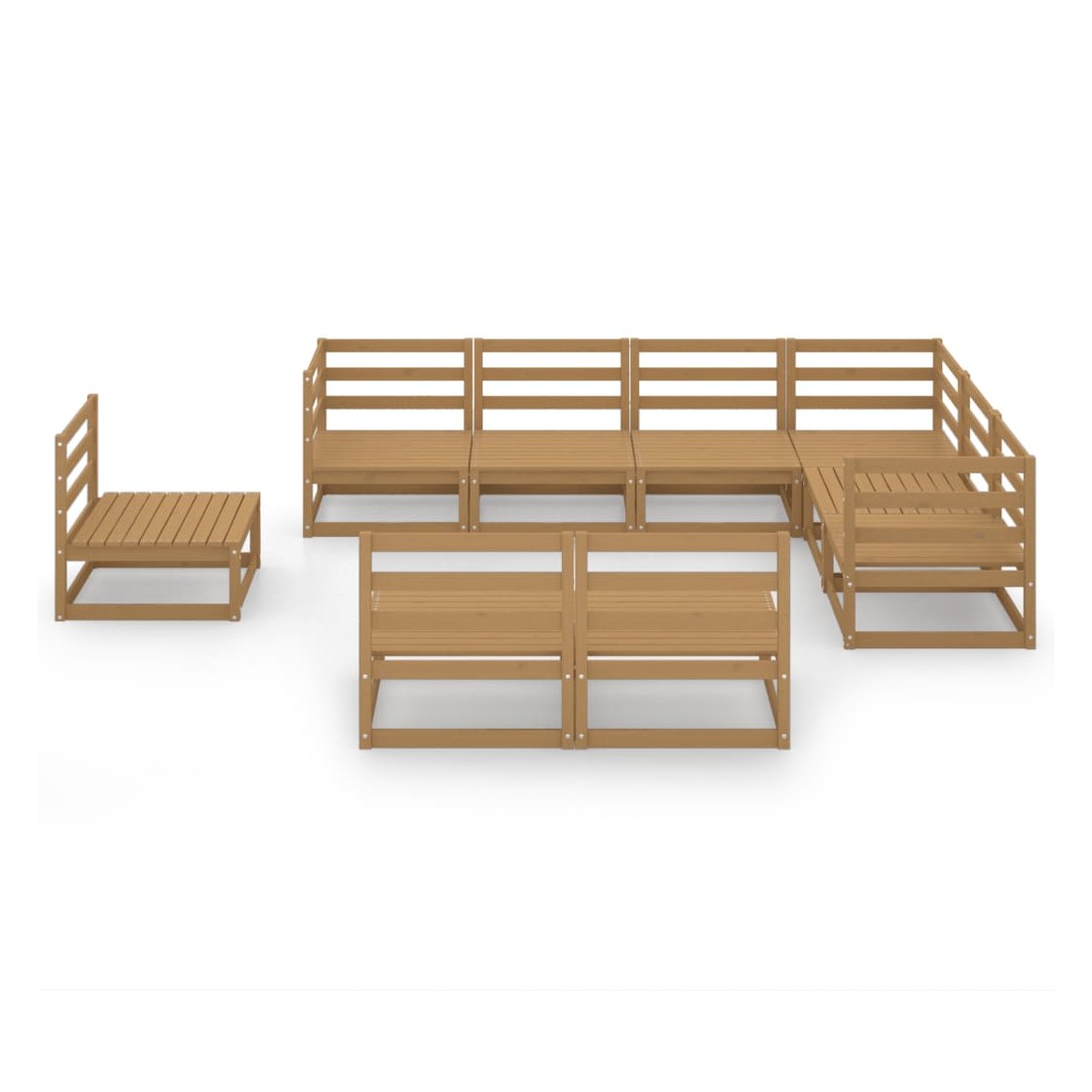 Salon de jardin 9 pcs marron miel bois de pin massif
