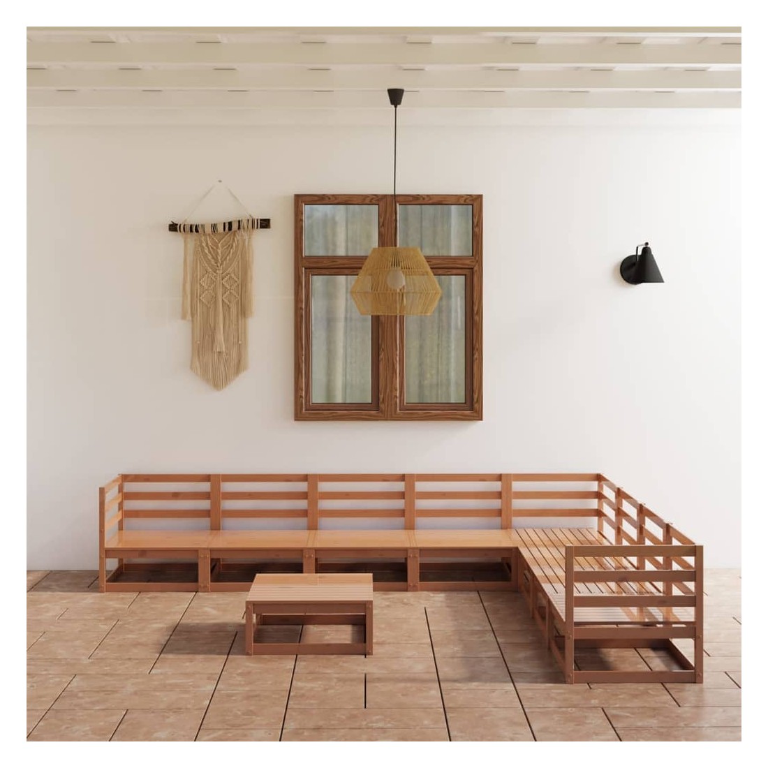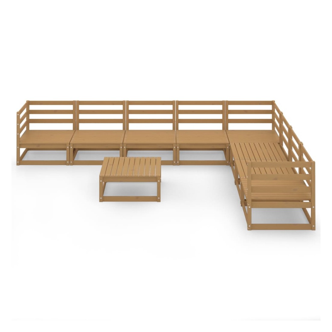 Salon de jardin 9 pcs marron miel bois de pin massif