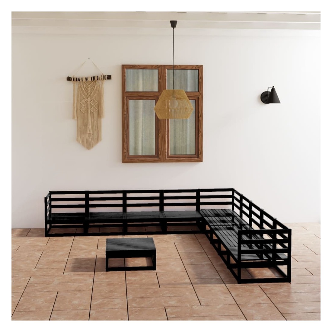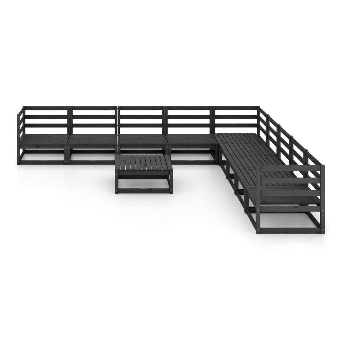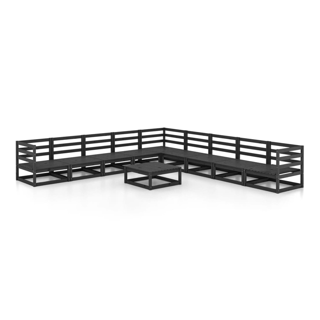 Salon de jardin 10 pcs noir bois de pin massif