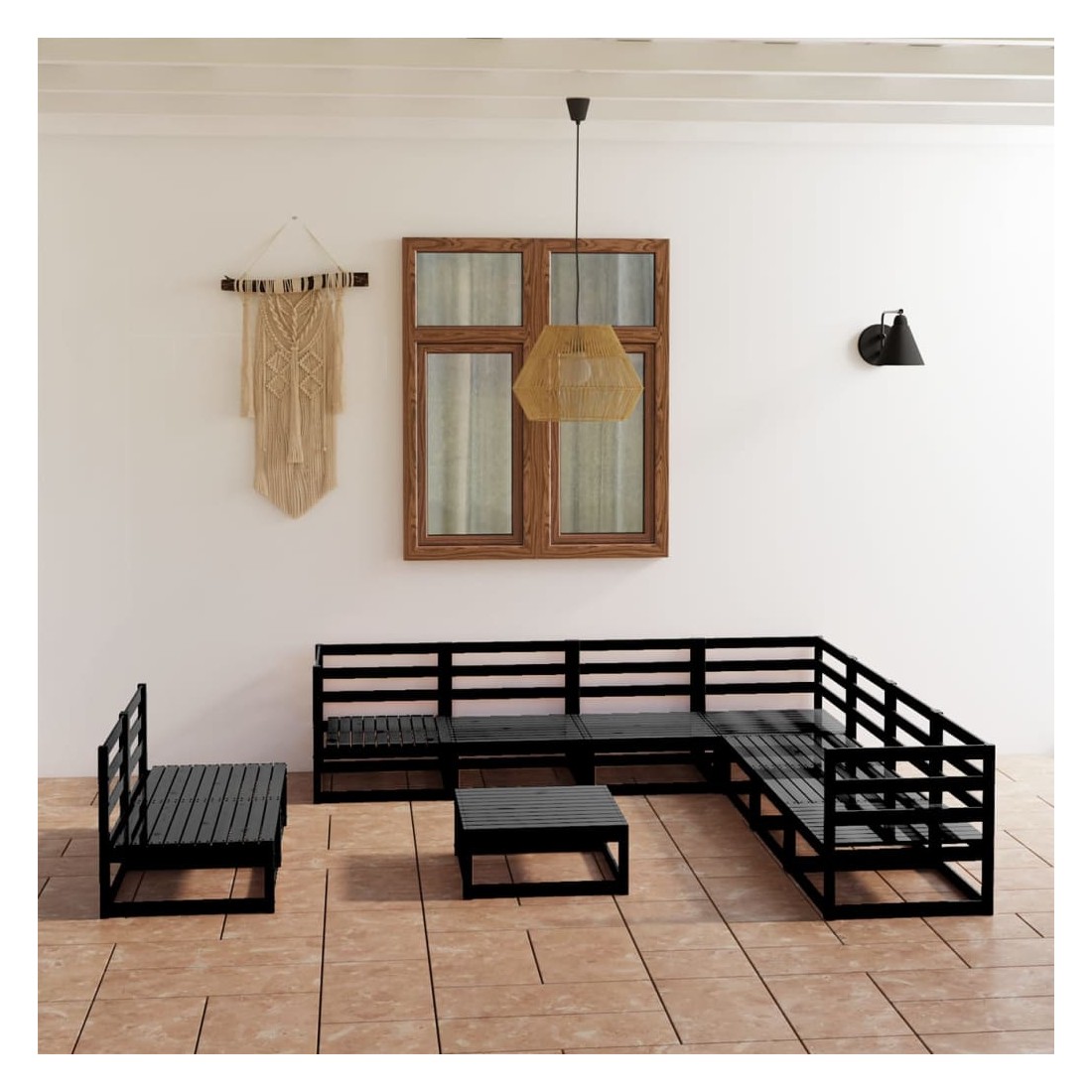 Salon de jardin 10 pcs noir bois de pin massif