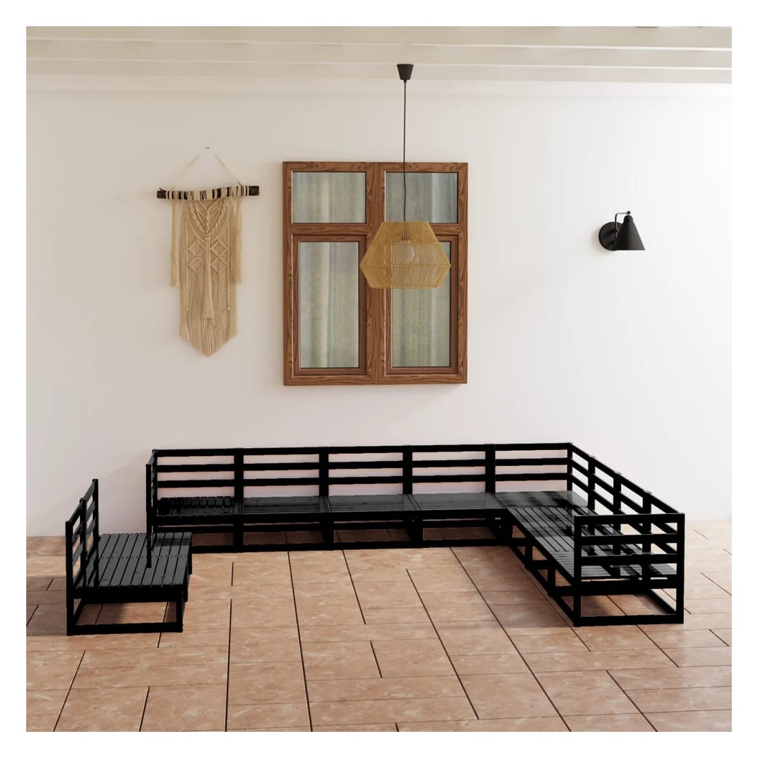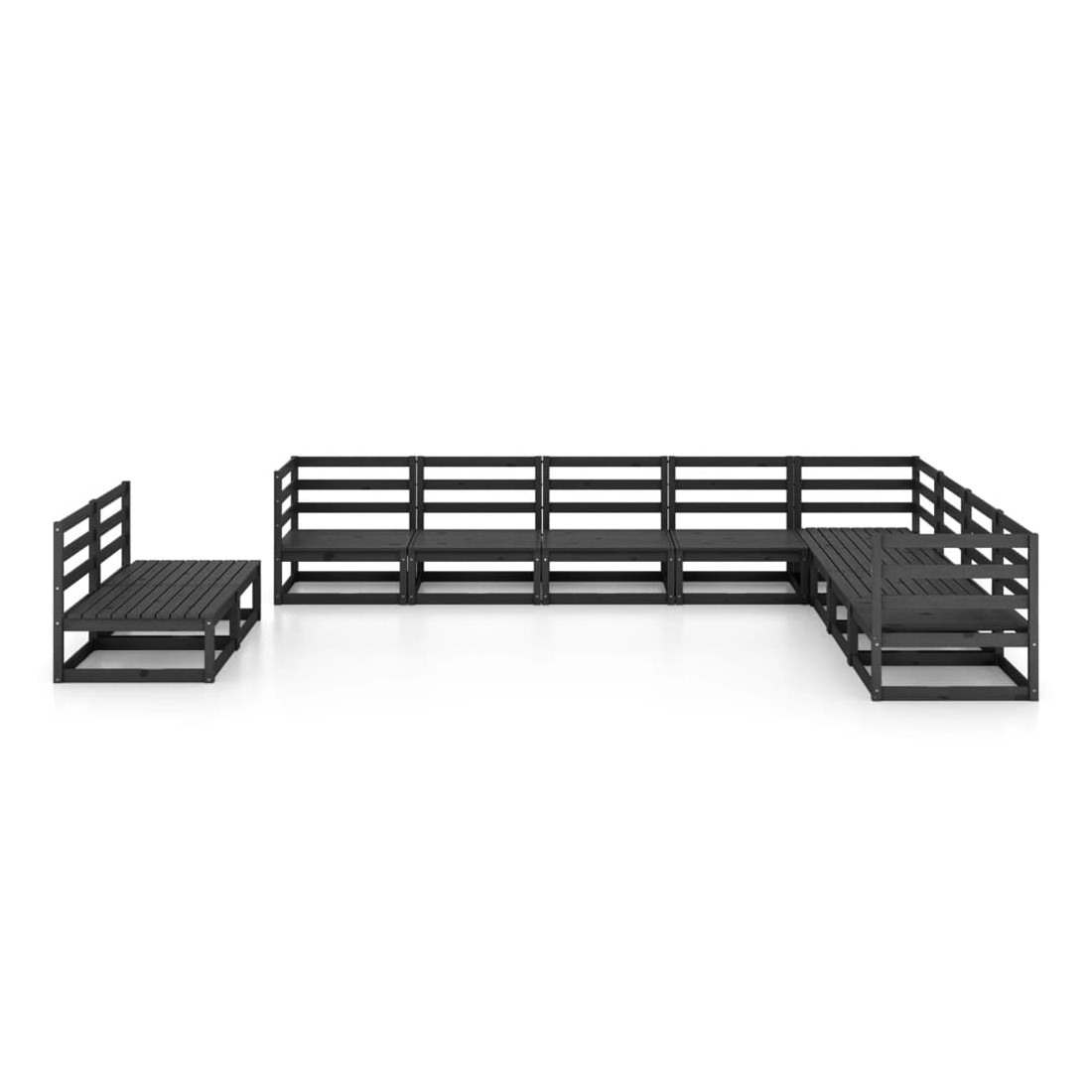 Salon de jardin 10 pcs noir bois de pin massif