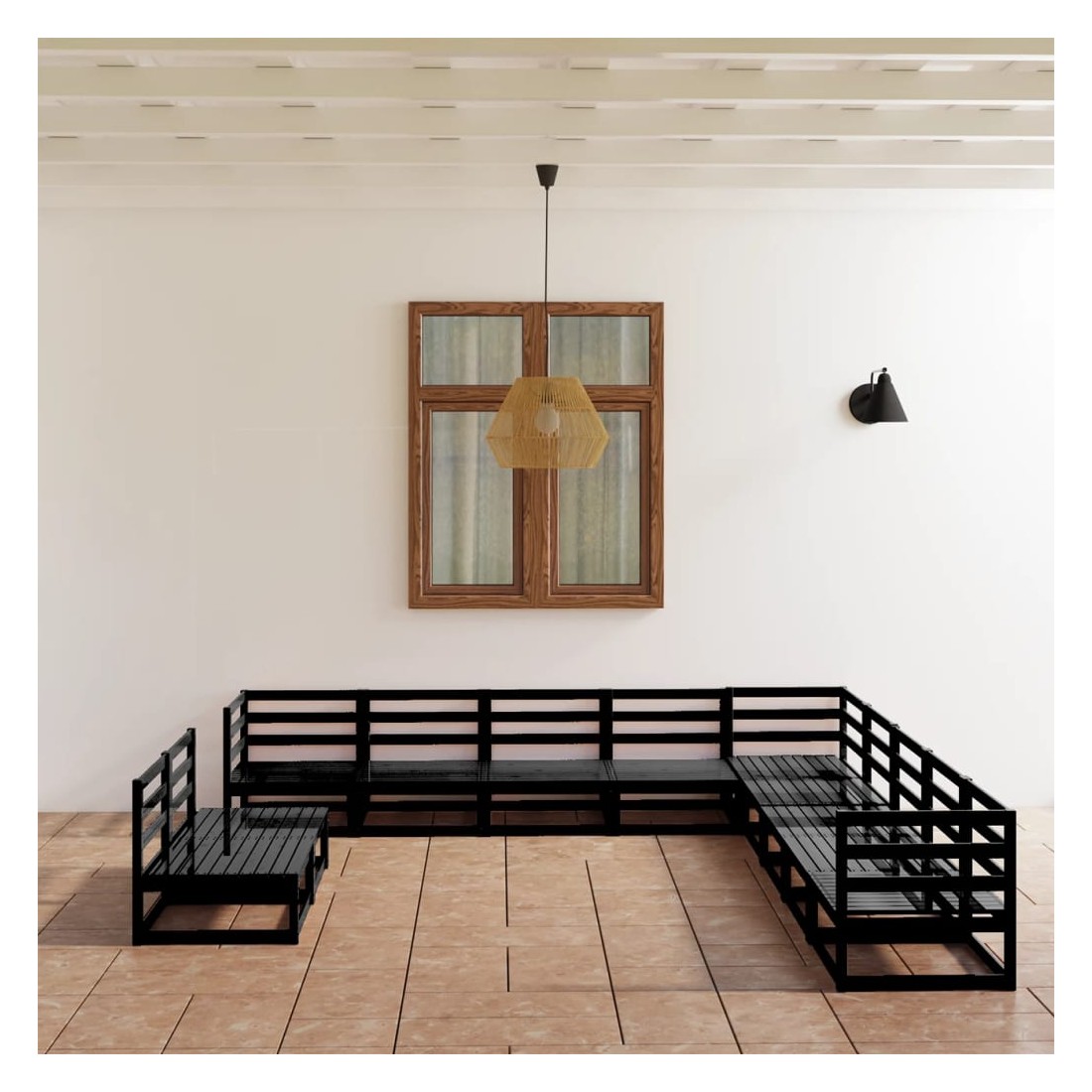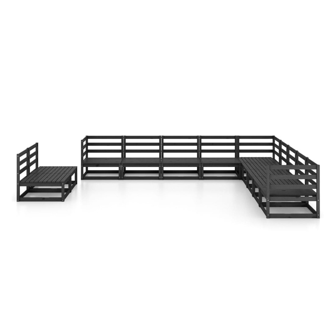 Salon de jardin 11 pcs noir bois de pin massif