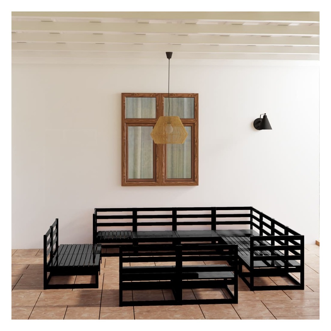 Salon de jardin 11 pcs noir bois de pin massif