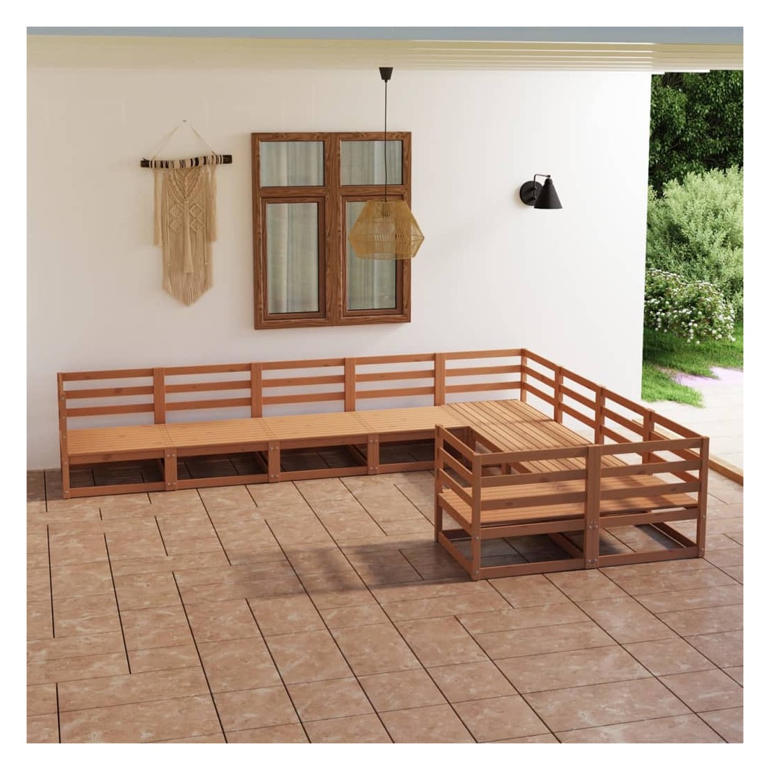 Ce salon de jardin est un excellent choix pour vous détendre et profiter du beau temps, faire une sieste ou discuter avec votre famille ou vos amis. Le salon de jardin est fait de bois de pin massif, ce qui le rend robuste et stable. Vous pouvez le combiner avec d'autres segments modulaires pour créer votre propre ensemble de salon de jardin ! Remarque : afin de prolonger la durée de vie des meubles d'extérieur, nous vous recommandons de les protéger avec une housse imperméable.