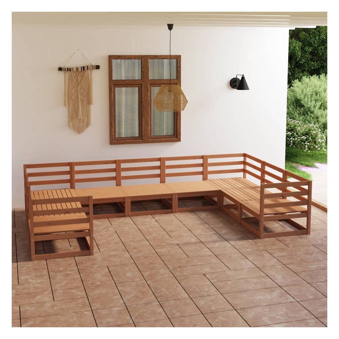 Ce salon de jardin est un excellent choix pour vous détendre et profiter du beau temps, faire une sieste ou discuter avec votre famille ou vos amis. Le salon de jardin est fait de bois de pin massif, ce qui le rend robuste et stable. Vous pouvez le combiner avec d'autres segments modulaires pour créer votre propre ensemble de salon de jardin ! Remarque : afin de prolonger la durée de vie des meubles d'extérieur, nous vous recommandons de les protéger avec une housse imperméable.