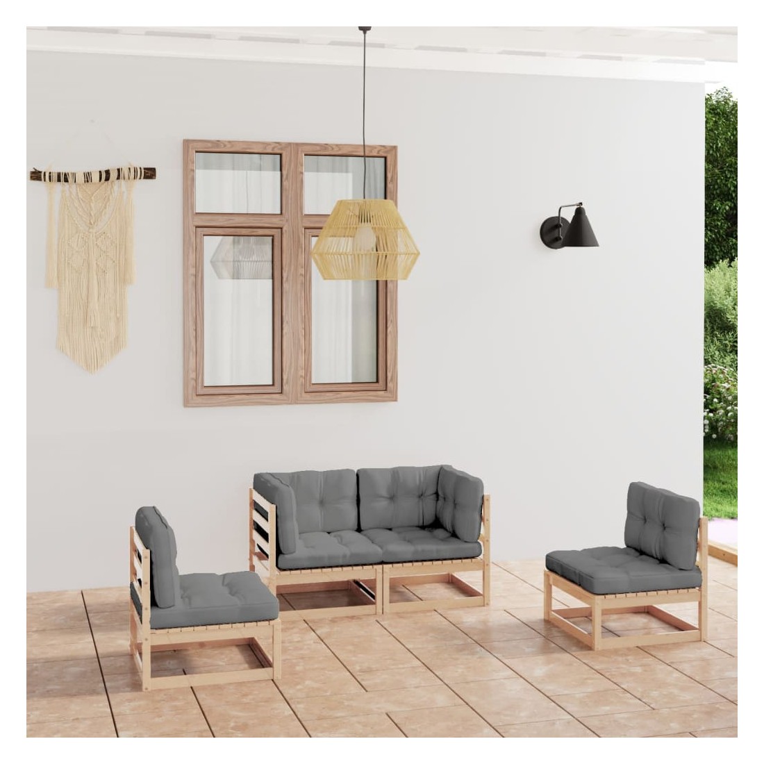 Ce salon de jardin est un excellent choix pour vous détendre et profiter du beau temps, faire une sieste ou discuter avec votre famille ou vos amis. L’ensemble de salon de jardin est fabriqué en bois de pin massif, ce qui le rend robuste et stable. Les coussins ajoutent un confort supplémentaire. Vous pouvez le combiner avec d’autres segments modulaires pour créer vos propres configurations de salon de jardin ! Remarque : afin de prolonger la durée de vie des meubles d'extérieur, nous vous recommandons de les protéger avec une housse imperméable.