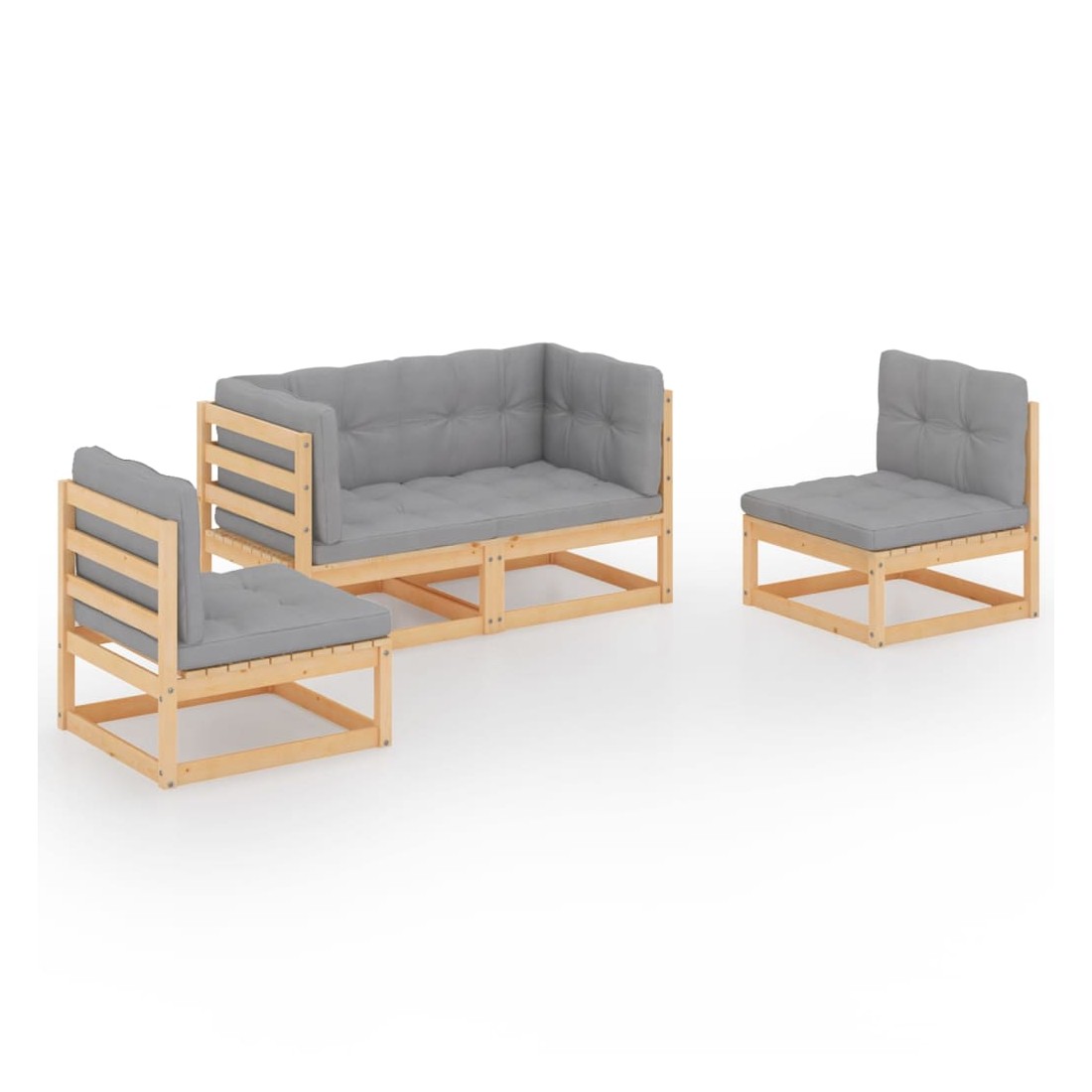 Salon de jardin 4 pcs avec coussins Bois de pin massif