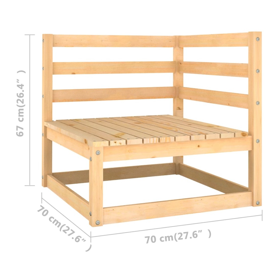 - Dimensions du canapé d'angle/central : 70 x 70 x 67 cm (l x P x H)