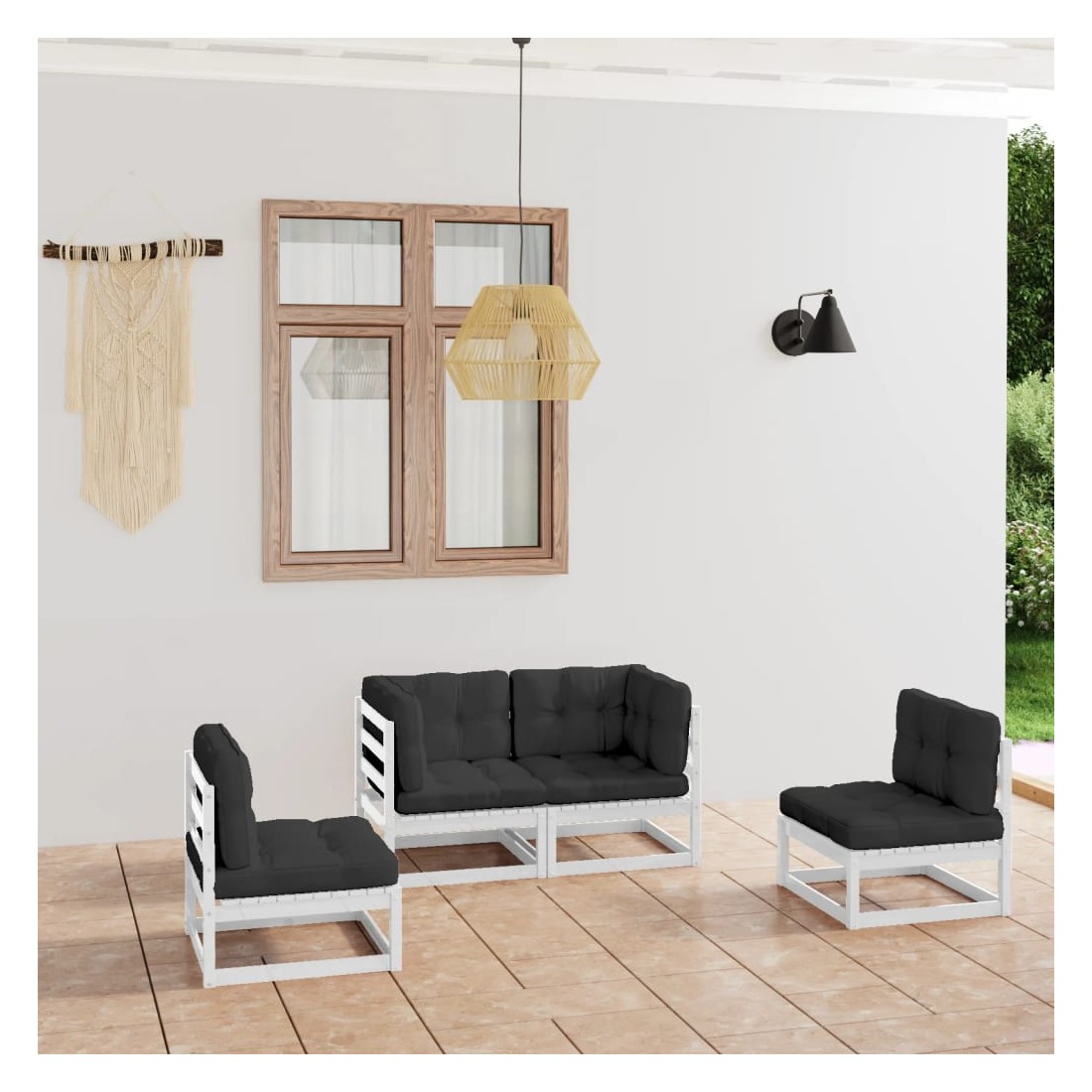 Ce salon de jardin est un excellent choix pour vous détendre et profiter du beau temps, faire une sieste ou discuter avec votre famille ou vos amis. L’ensemble de salon de jardin est fabriqué en bois de pin massif, ce qui le rend robuste et stable. Les coussins ajoutent un confort supplémentaire. Vous pouvez le combiner avec d’autres segments modulaires pour créer vos propres configurations de salon de jardin ! Remarque : afin de prolonger la durée de vie des meubles d'extérieur, nous vous recommandons de les protéger avec une housse imperméable.