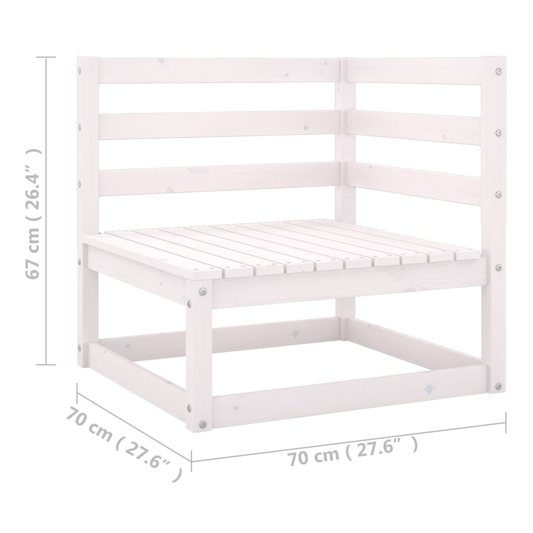 - Dimensions du canapé d'angle/central : 70 x 70 x 67 cm (l x P x H)