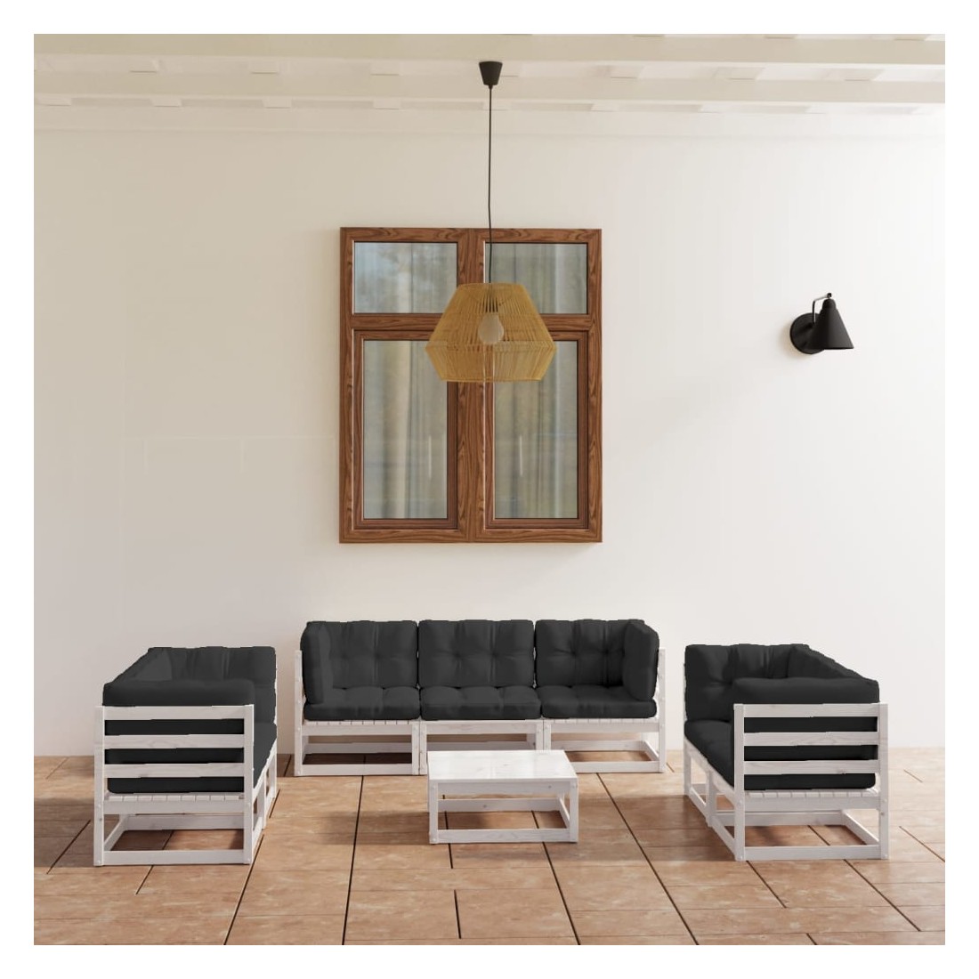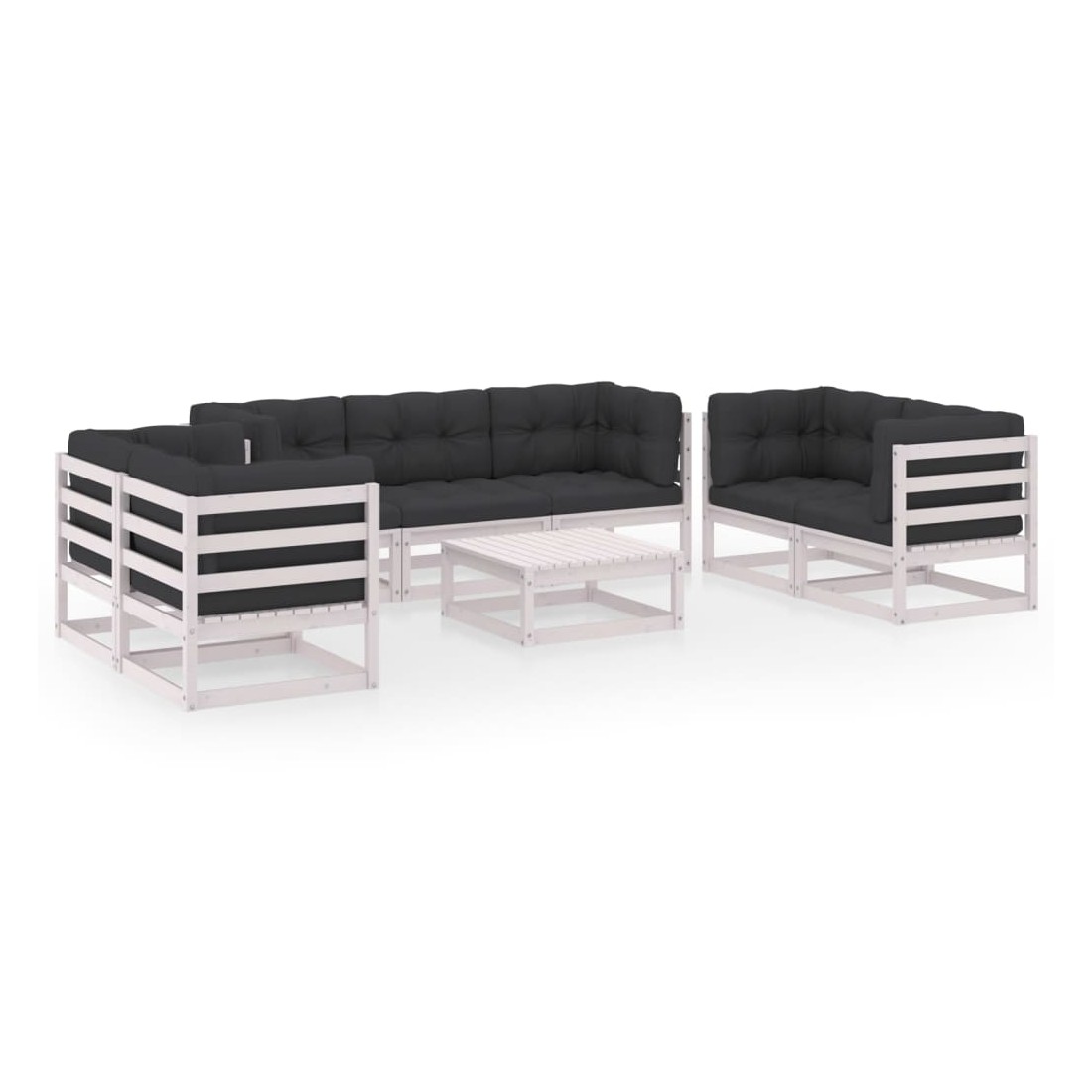 Ce salon de jardin est un excellent choix pour vous détendre et profiter du beau temps, faire une sieste ou discuter avec votre famille ou vos amis. L’ensemble de salon de jardin est fabriqué en bois de pin massif, ce qui le rend robuste et stable. Les coussins ajoutent un confort supplémentaire. Vous pouvez le combiner avec d’autres segments modulaires pour créer vos propres configurations de salon de jardin ! Remarque : afin de prolonger la durée de vie des meubles d'extérieur, nous vous recommandons de les protéger avec une housse imperméable.