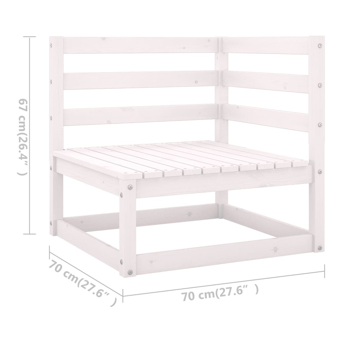 - Dimensions du canapé central/d'angle : 70 x 70 x 67 cm (l x P x H)