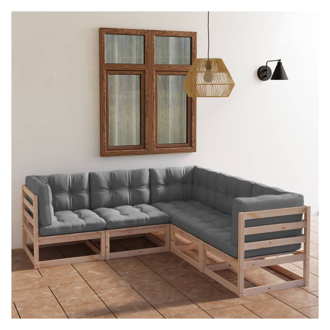 Salon de jardin 5 pcs avec coussins Bois de pin massif