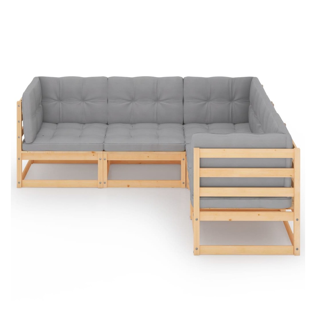 Ce salon de jardin est un excellent choix pour vous détendre et profiter du beau temps, faire une sieste ou discuter avec votre famille ou vos amis. L’ensemble de salon de jardin est fabriqué en bois de pin massif, ce qui le rend robuste et stable. Les coussins ajoutent un confort supplémentaire. Vous pouvez le combiner avec d’autres segments modulaires pour créer vos propres configurations de salon de jardin ! Remarque : afin de prolonger la durée de vie des meubles d'extérieur, nous vous recommandons de les protéger avec une housse imperméable.
