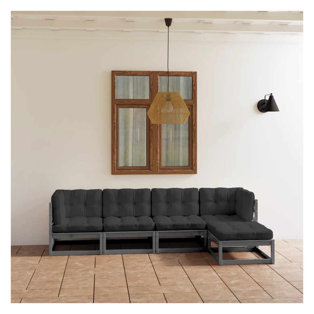 Salon de jardin 5 pcs avec coussins Bois de pin massif