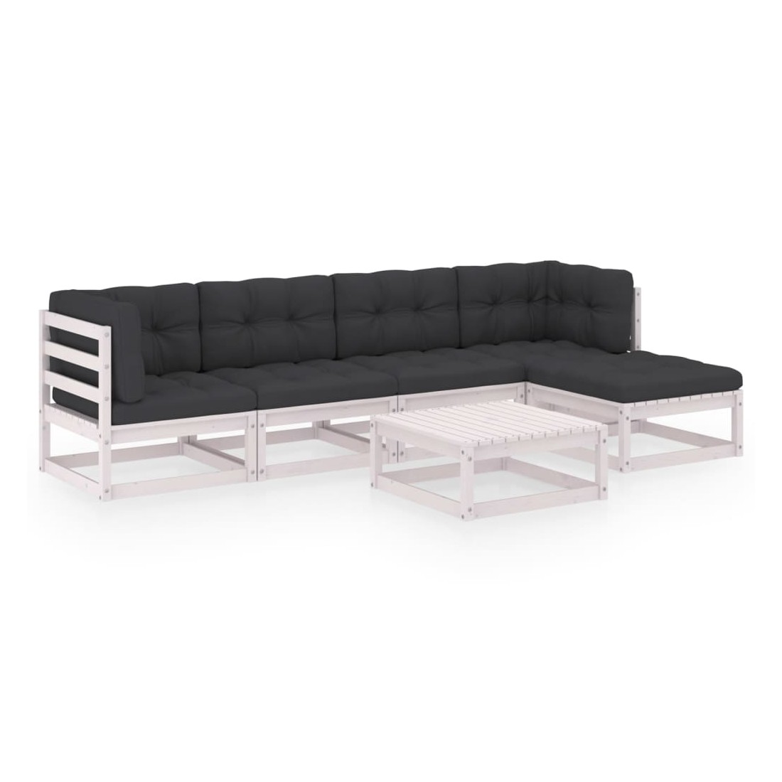 Ce salon de jardin est un excellent choix pour vous détendre et profiter du beau temps, faire une sieste ou discuter avec votre famille ou vos amis. L’ensemble de salon de jardin est fabriqué en bois de pin massif, ce qui le rend robuste et stable. Les coussins ajoutent un confort supplémentaire. Vous pouvez le combiner avec d’autres segments modulaires pour créer vos propres configurations de salon de jardin ! Remarque : afin de prolonger la durée de vie des meubles d'extérieur, nous vous recommandons de les protéger avec une housse imperméable.