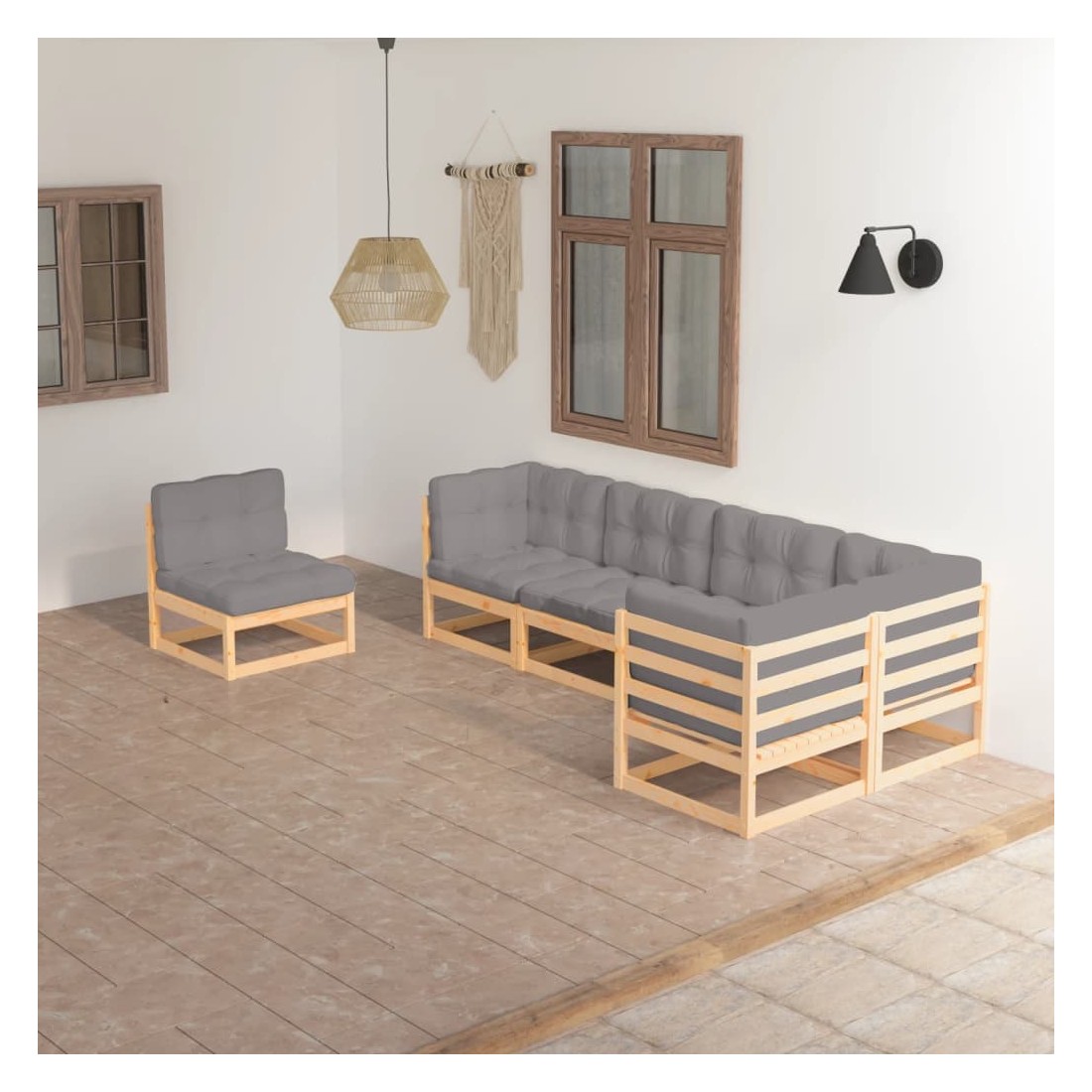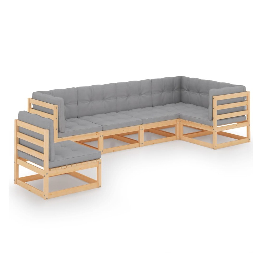 Salon de jardin 6 pcs avec coussins Bois de pin massif