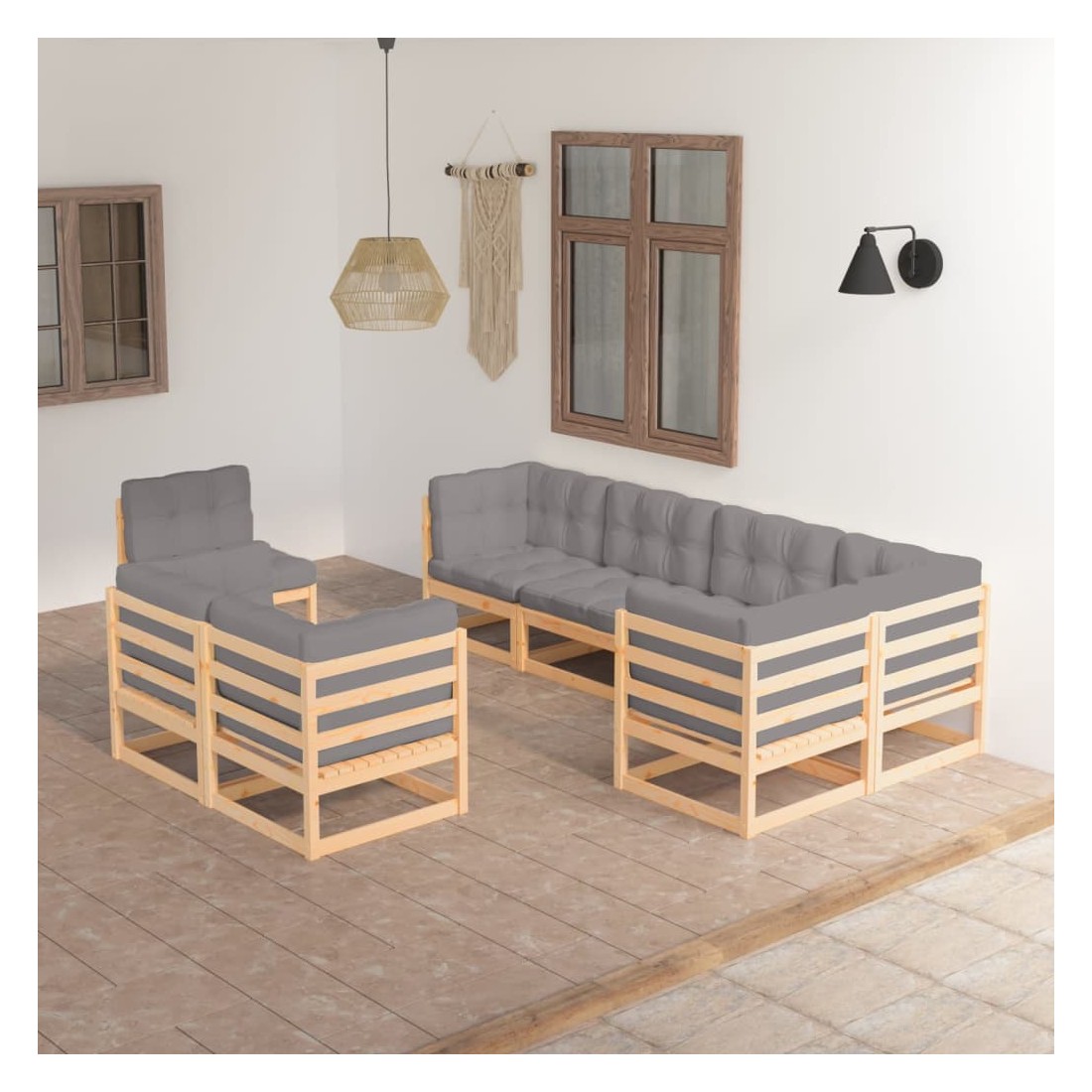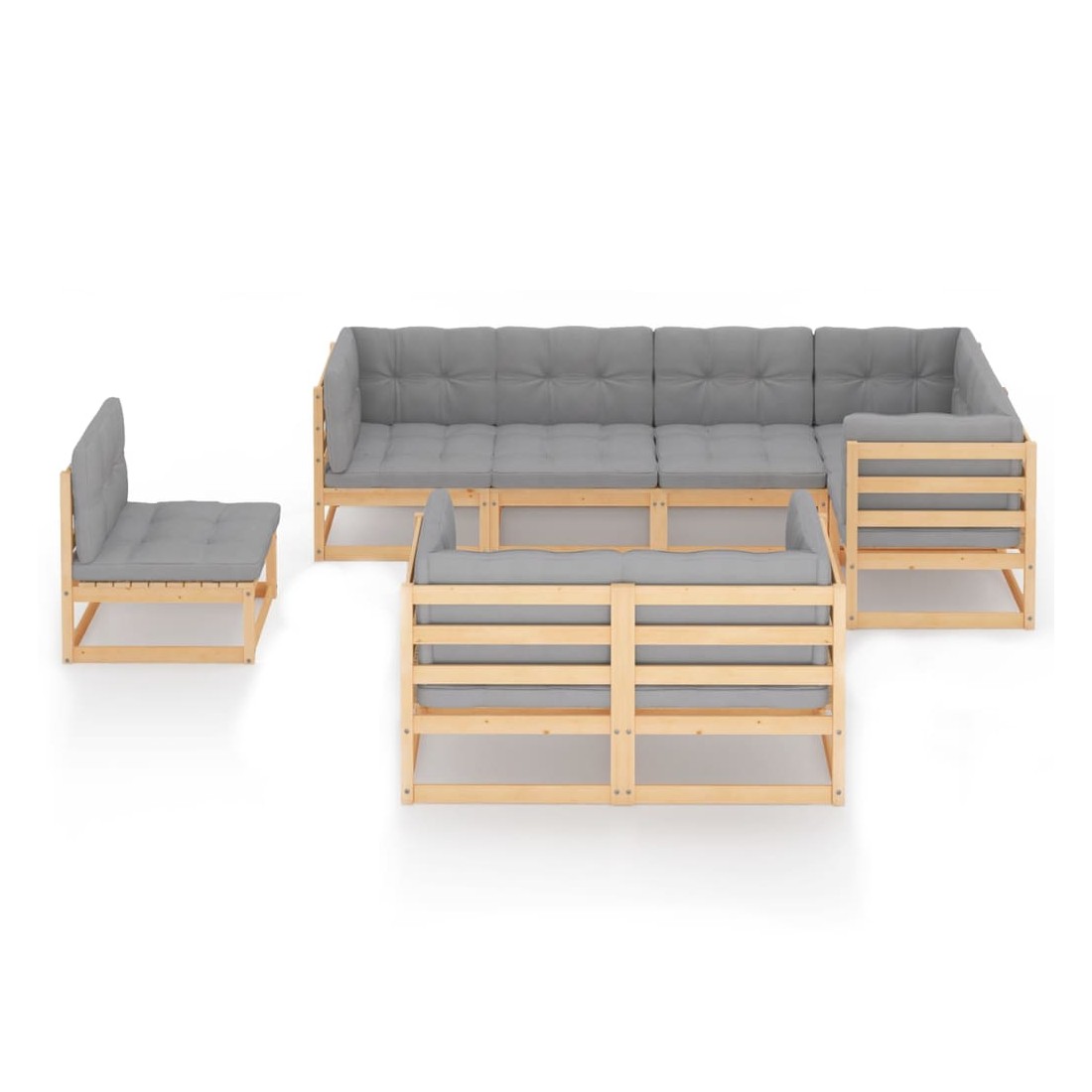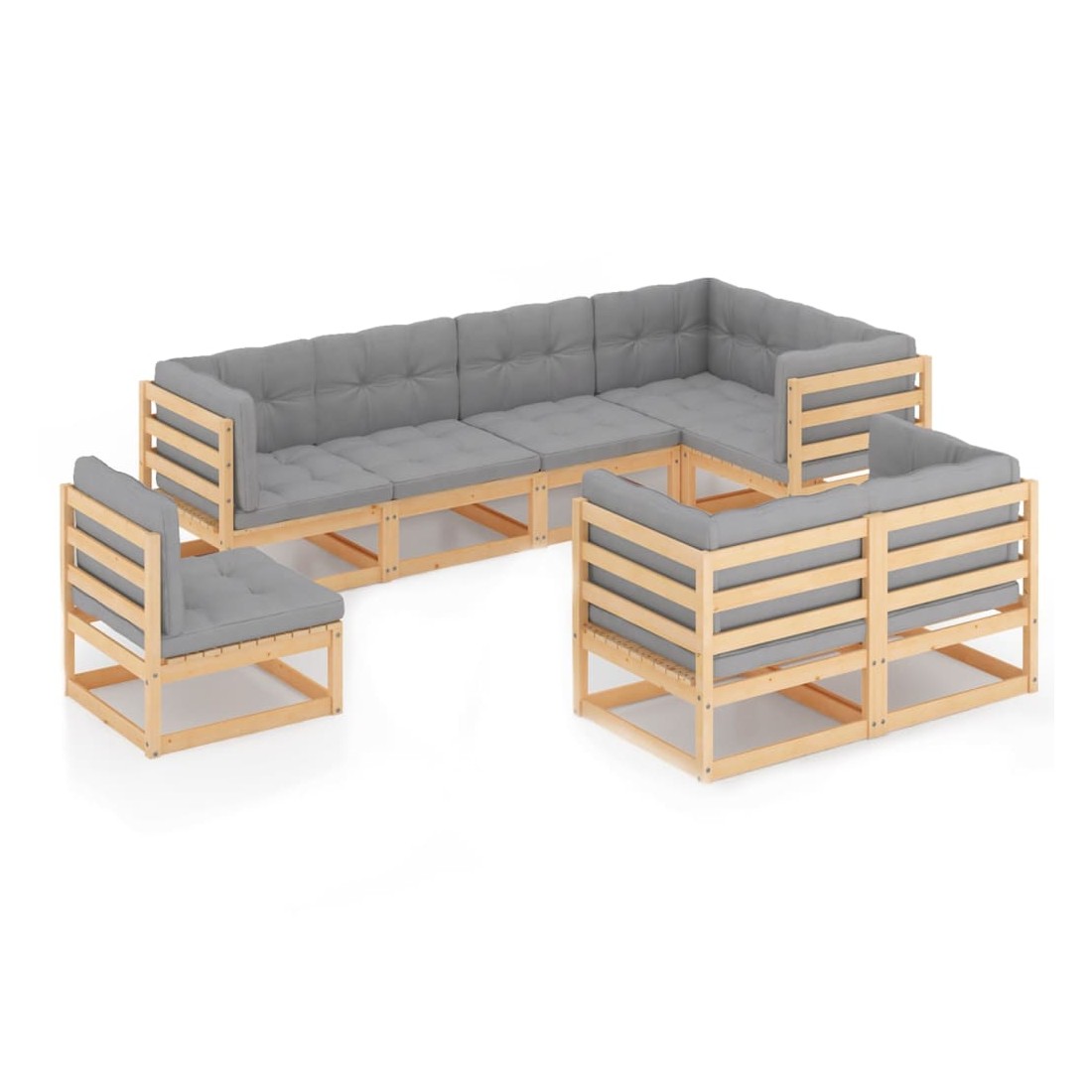 Salon de jardin 8 pcs avec coussins Bois de pin massif
