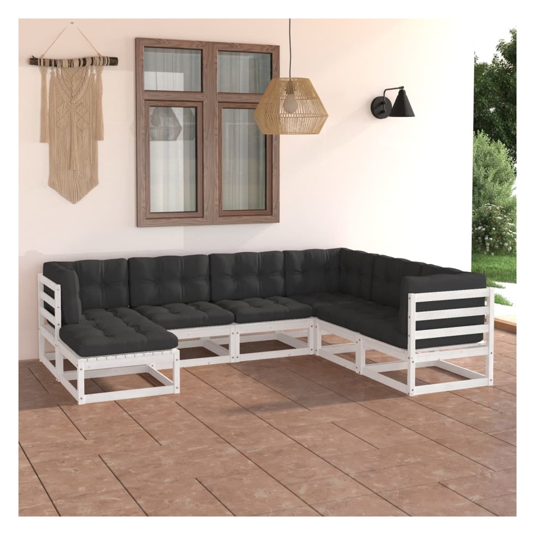 Salon de jardin 7 pcs avec coussins Bois de pin massif