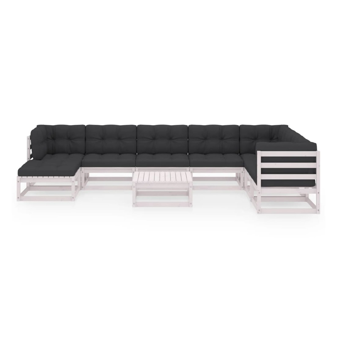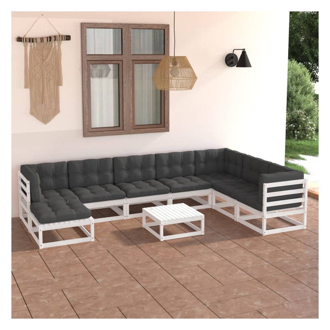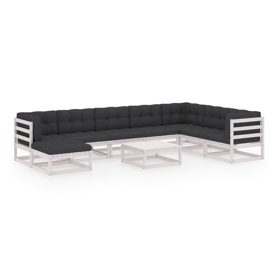 Salon de jardin 9 pcs avec coussins Bois de pin massif