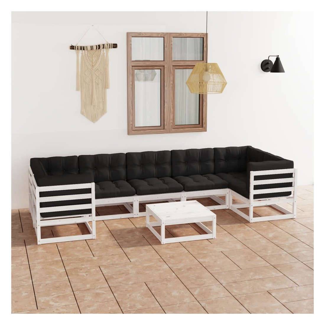 Salon de jardin avec coussins 8 pcs blanc bois de pin massif