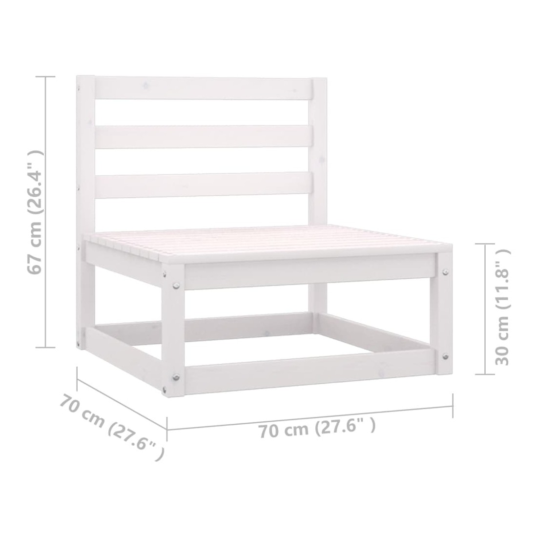 - Dimensions du canapé central : 70 x 70 x 67 cm (l x P x H)