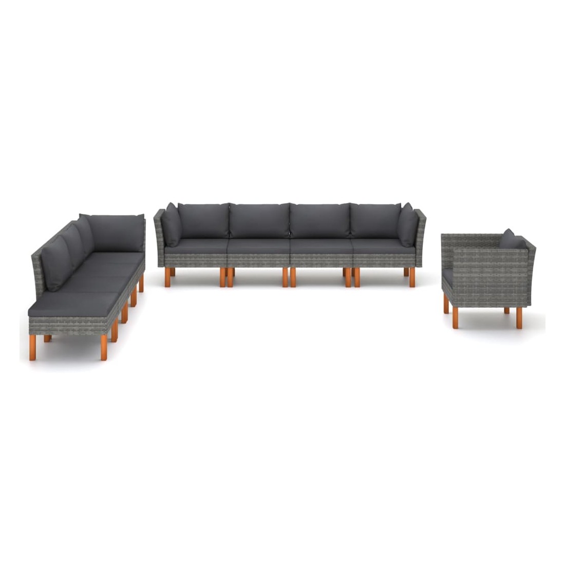 Ce salon de jardin est un excellent choix pour vous détendre et profiter du beau temps, faire une sieste ou discuter avec votre famille ou vos amis. Doté d’un cadre en acier enduit de poudre recouvert de résine tressée, cet ensemble de canapé de jardin est robuste et facile à nettoyer. Les pieds en bois d’eucalyptus massif contribuent à leur robustesse et à leur stabilité. De plus, les coussins ajoutent un confort supplémentaire à votre temps de détente. Équipées de fermetures éclair, les housses de coussin sont amovibles et lavables. Grâce à la construction légère, vous pouvez déplacer facilement le salon de jardin. Remarque : afin de prolonger la durée de vie des meubles d'extérieur, nous vous recommandons de les protéger avec une housse imperméable.