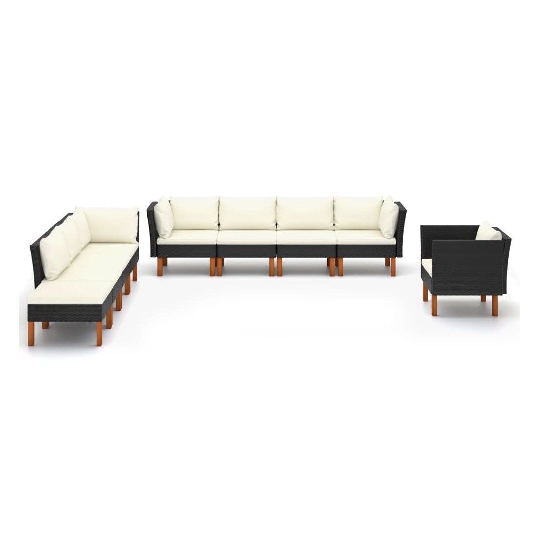 Salon de jardin 9 pcs Résine tressée et bois d'eucalyptus Noir