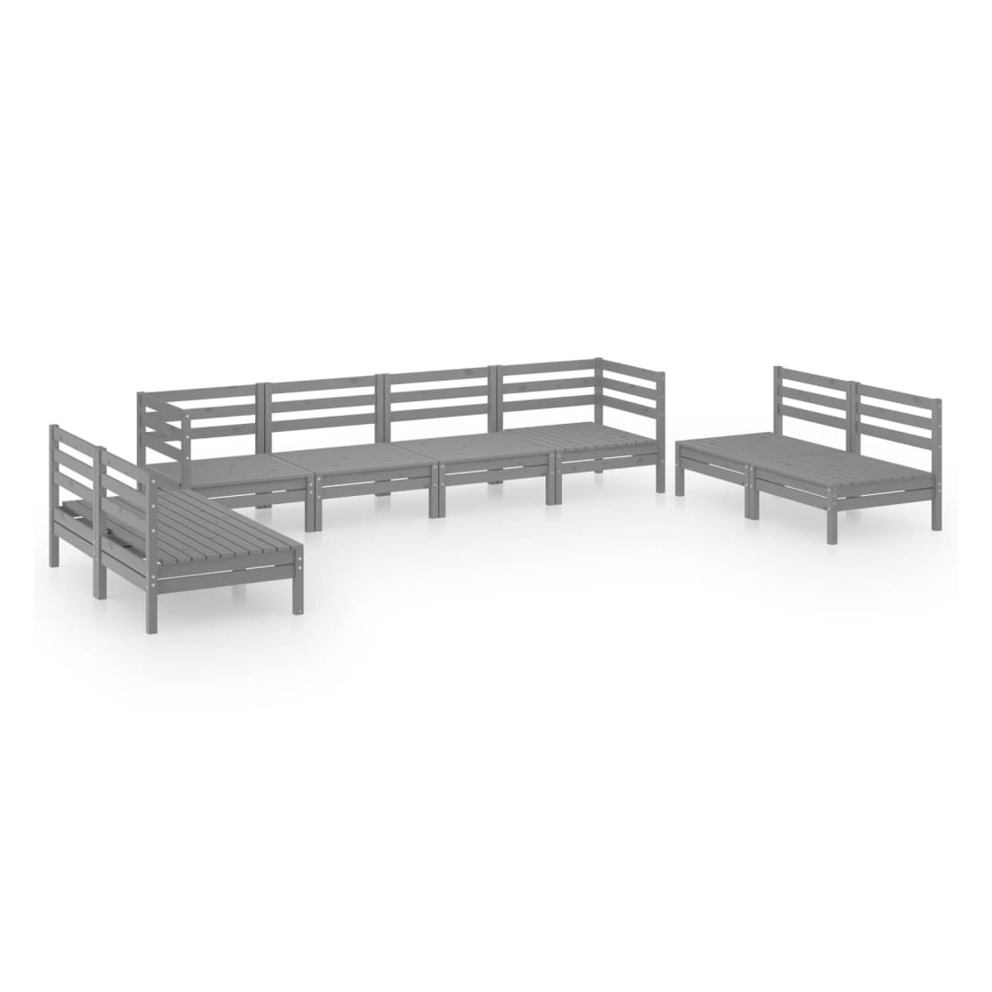Salon de jardin 8 pcs Gris Bois de pin massif