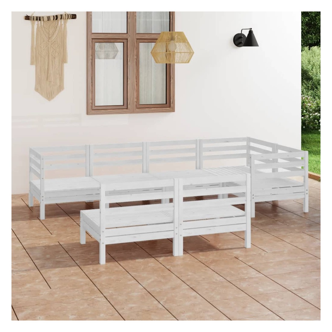 Salon de jardin 7 pcs Bois de pin massif Blanc