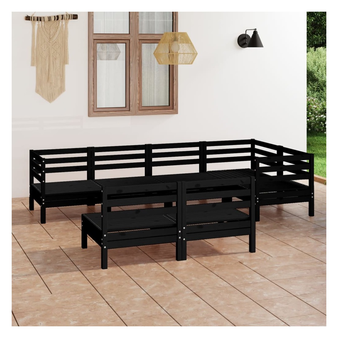 Salon de jardin 7 pcs Bois de pin massif Noir