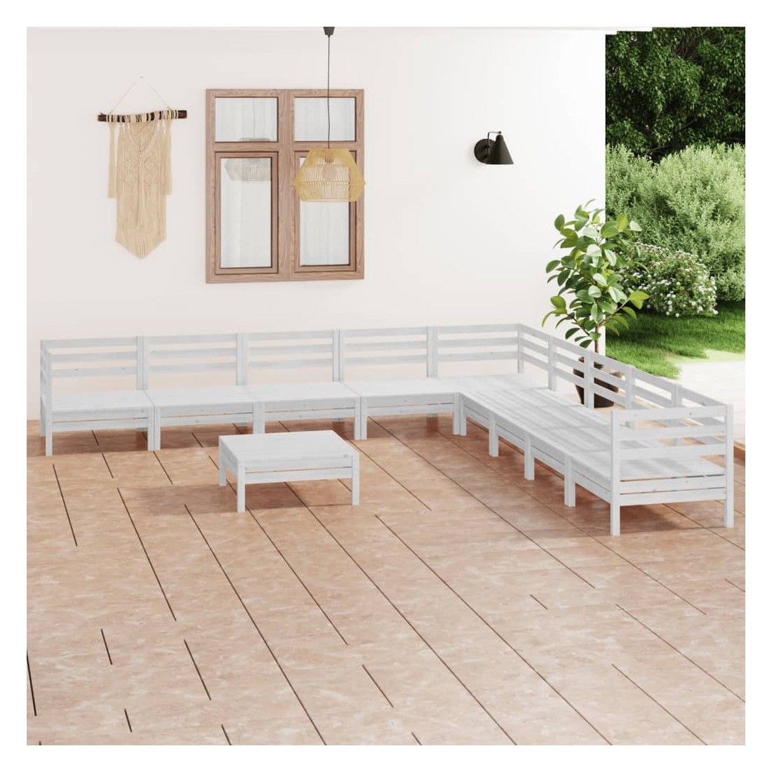 Salon de jardin 10 pcs Bois de pin massif Blanc