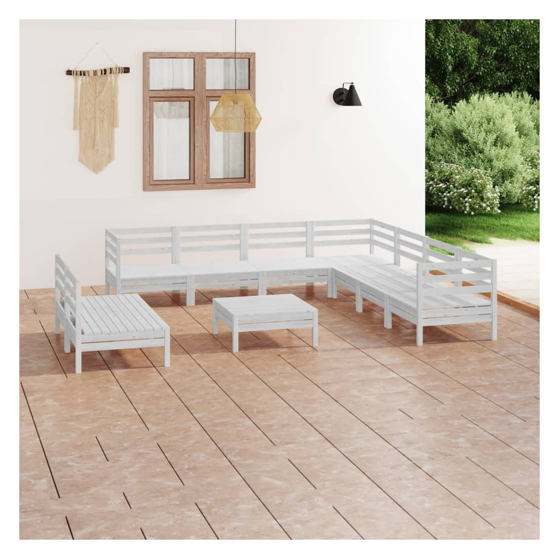 Salon de jardin 10 pcs Bois de pin massif Blanc