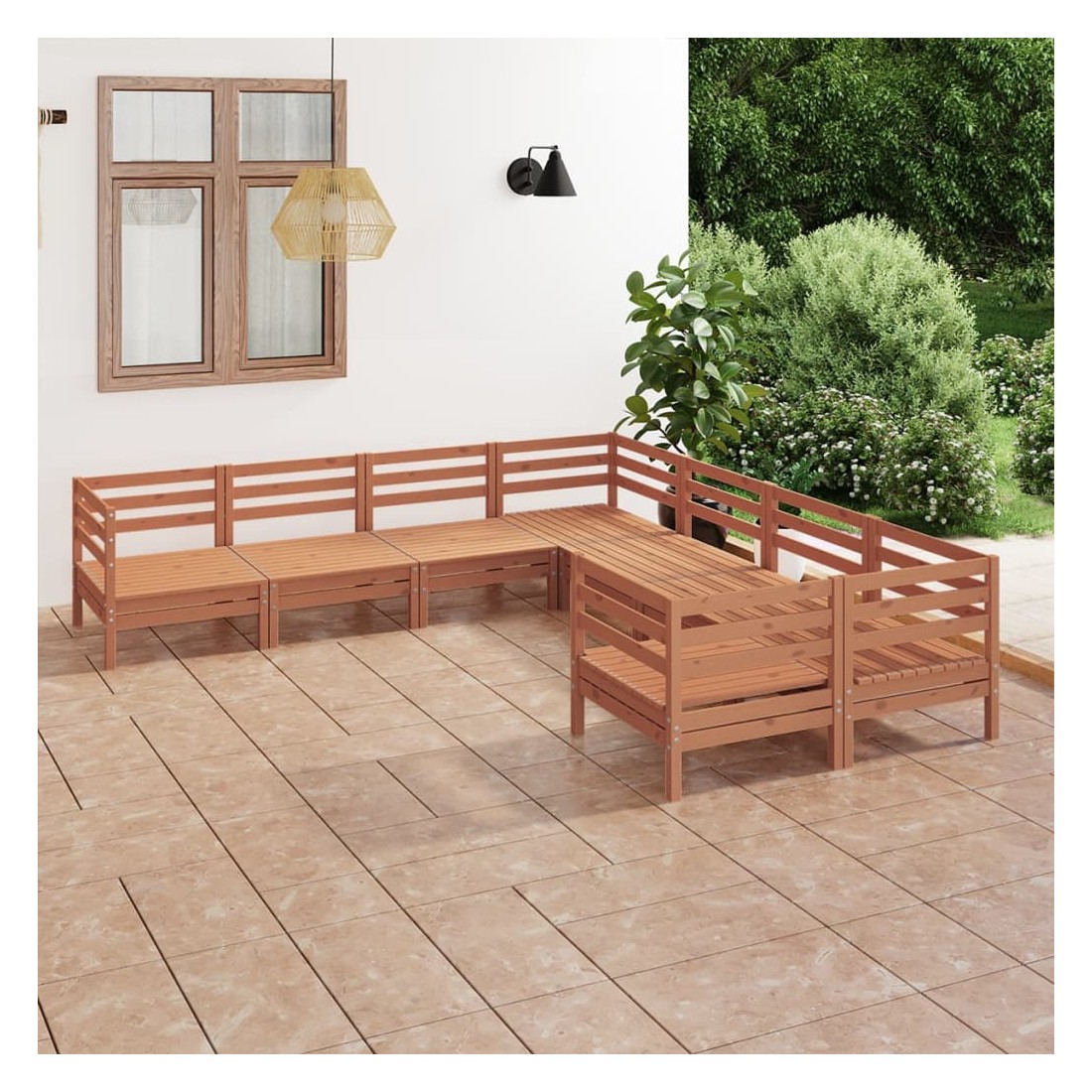 Salon de jardin 8 pcs Bois de pin massif Marron miel