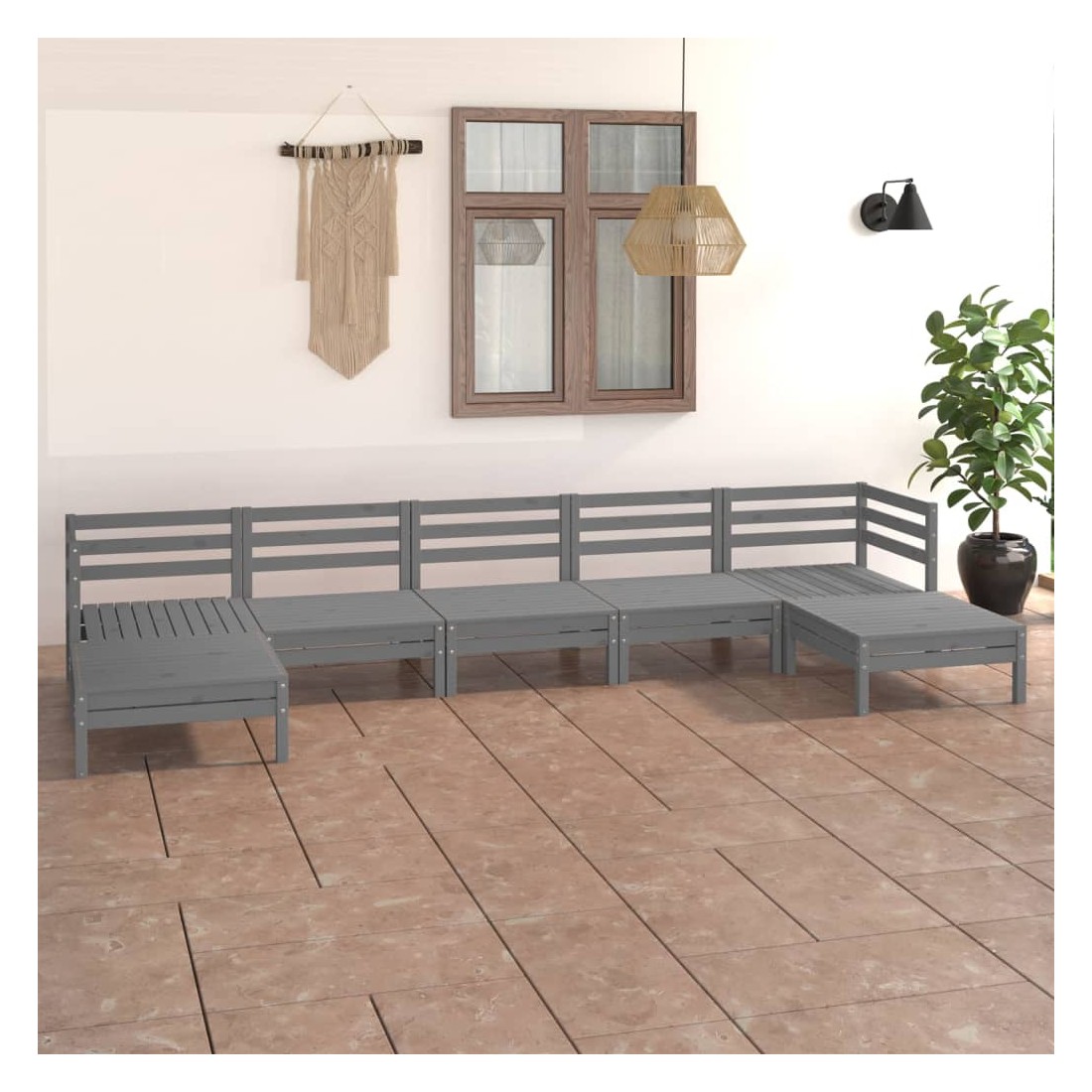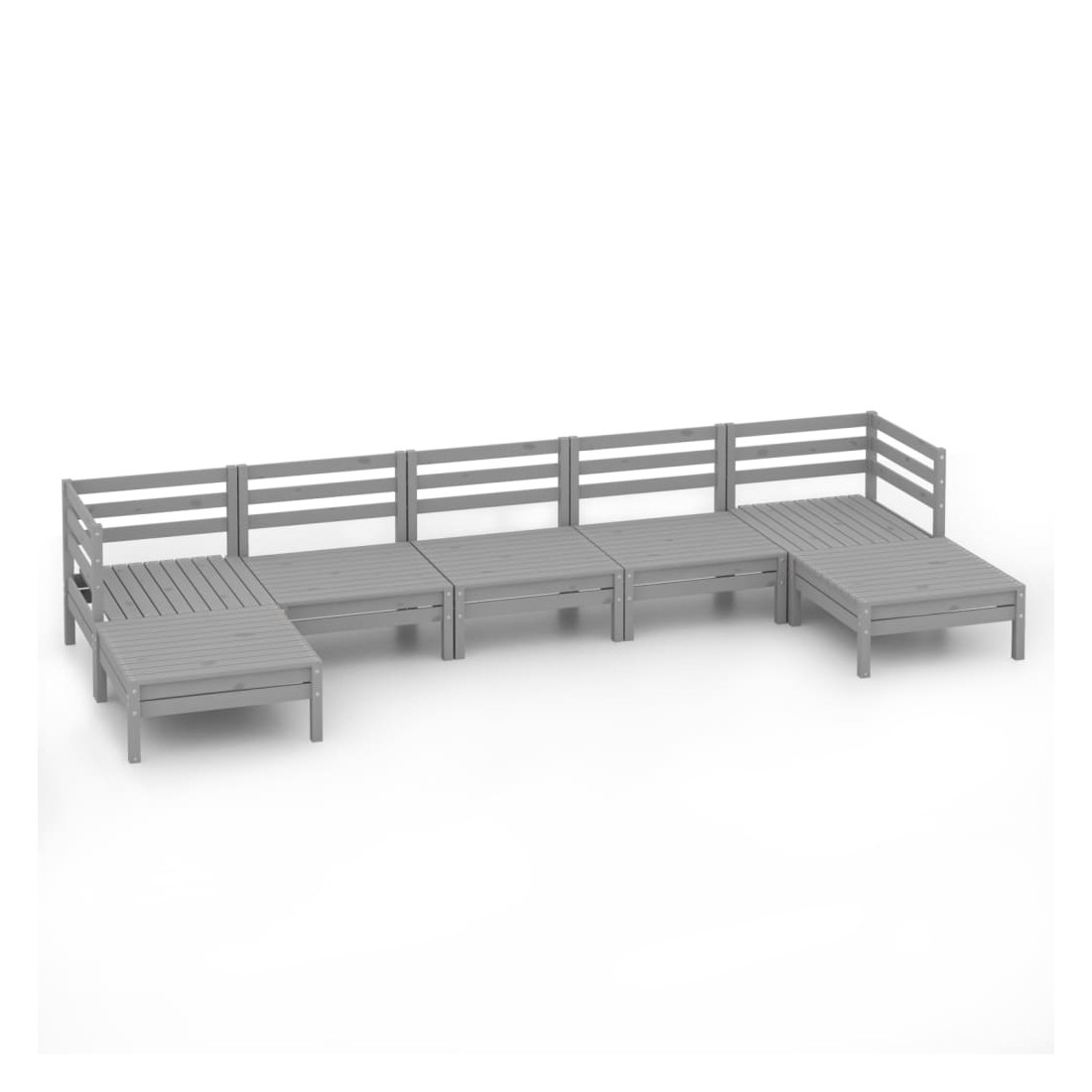 Salon de jardin 7 pcs Gris Bois de pin massif