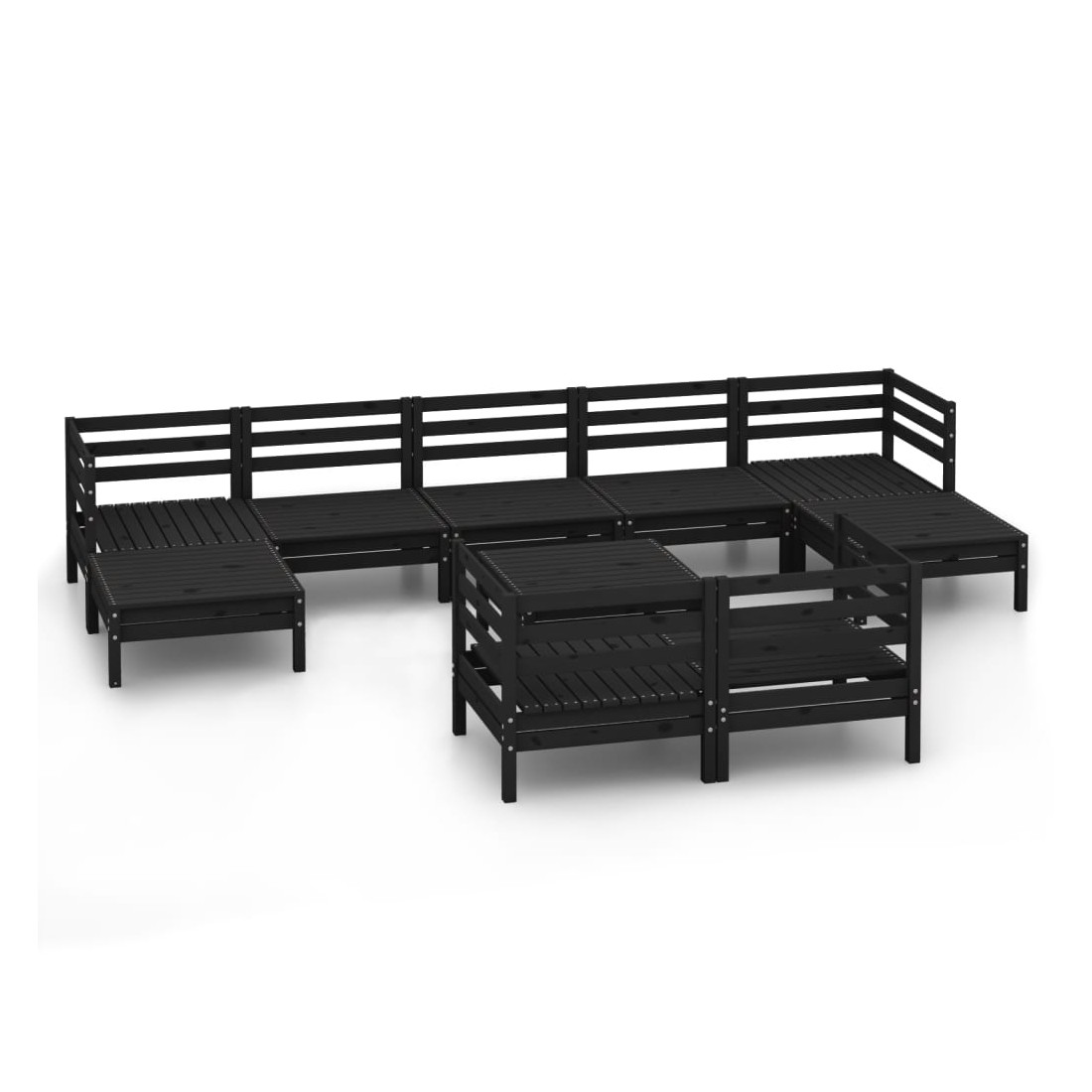 Salon de jardin 10 pcs Noir Bois de pin massif